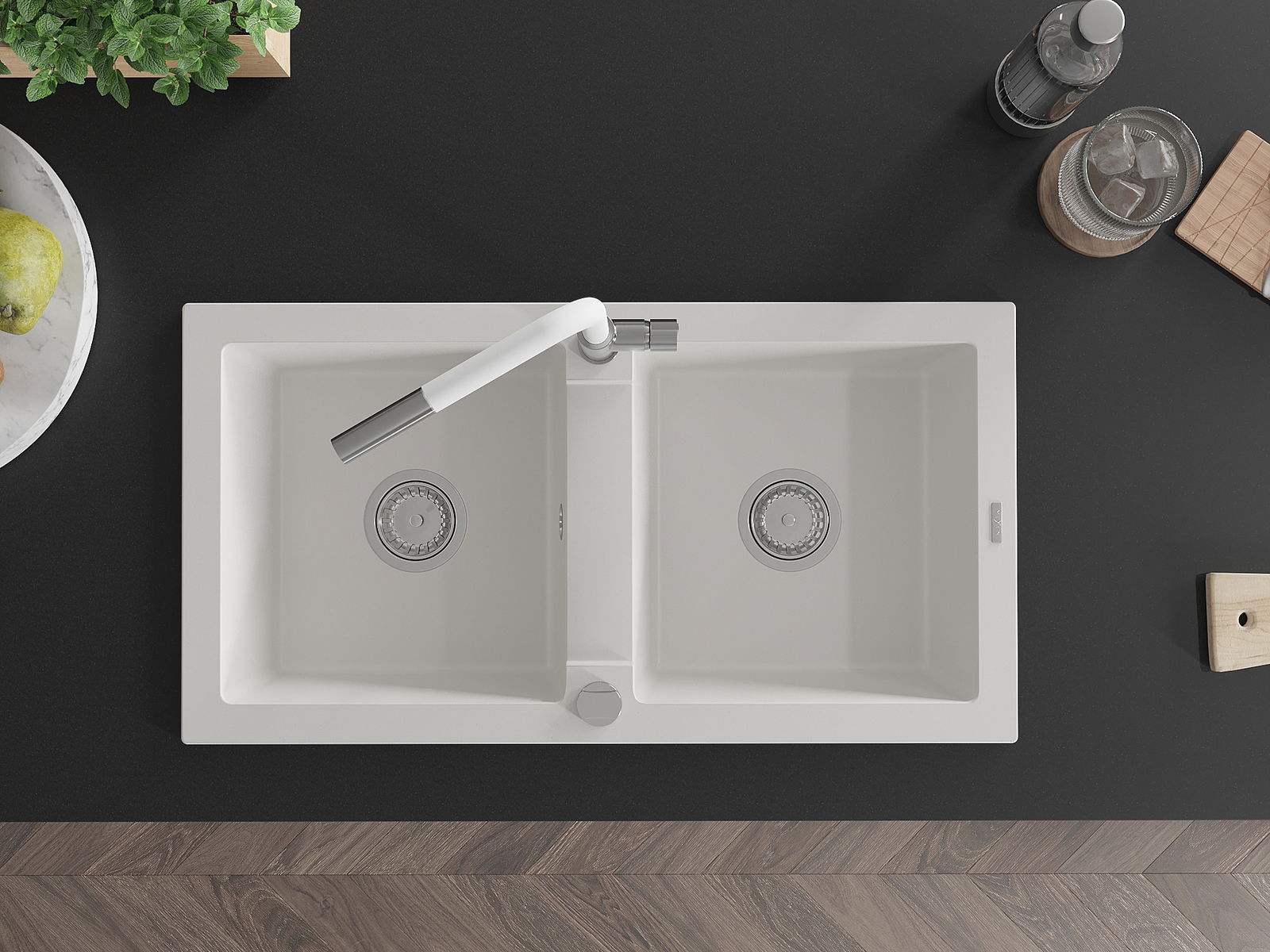 The sink is made of high quality granite. It is an elegant and, above all, practical complement to every kitchen, regardless of its style. High quality and granite durability ensure many years of use.