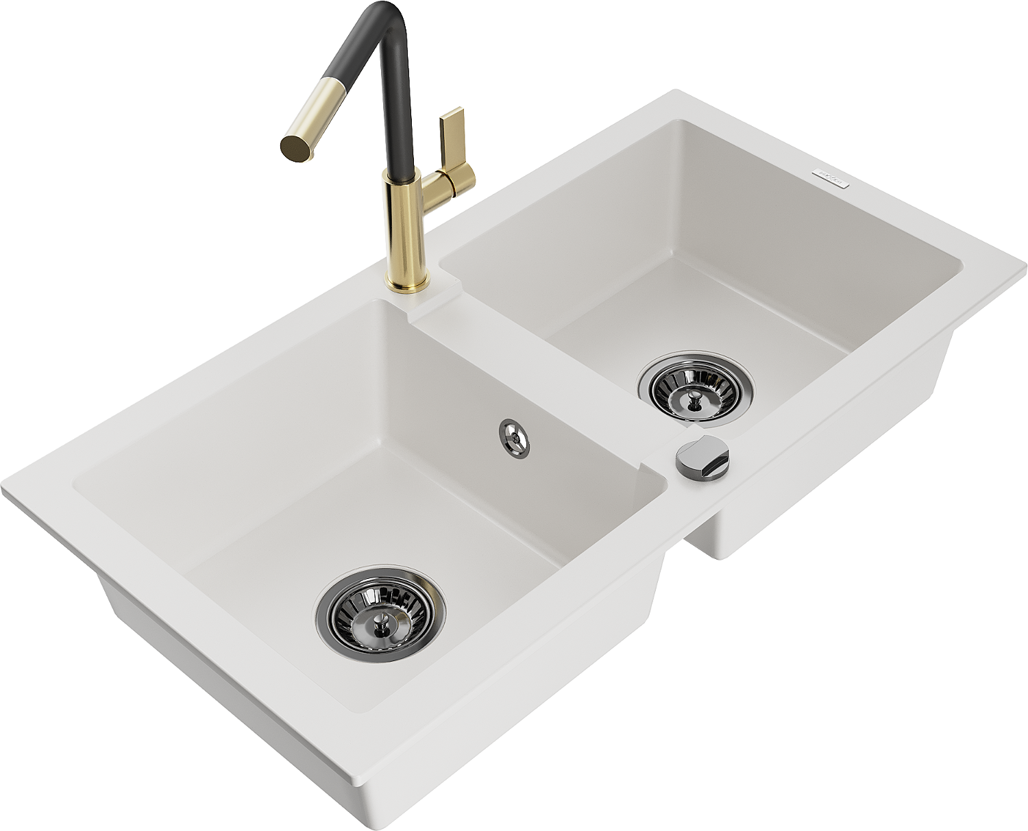 Mexen Mario Granite Sink 2-Chamber with Flora Kitchen Tap, White - 6504-20-670401-57-B