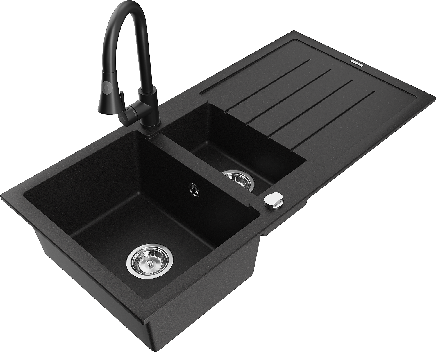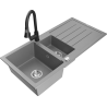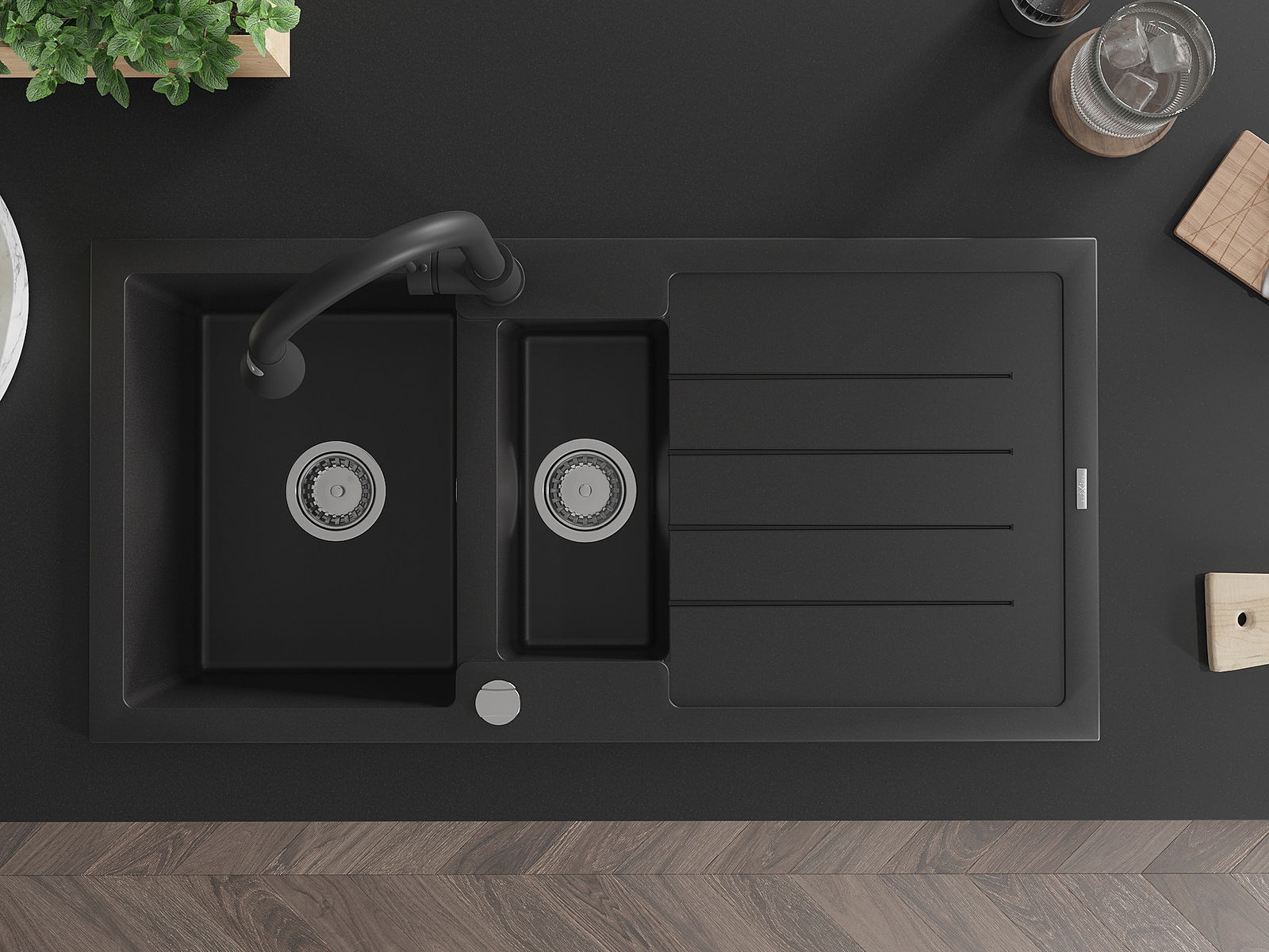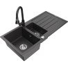 Mexen Andres granite sink 1.5 bowl with drainer and Elia kitchen tap, black - 6515-77-670101-70