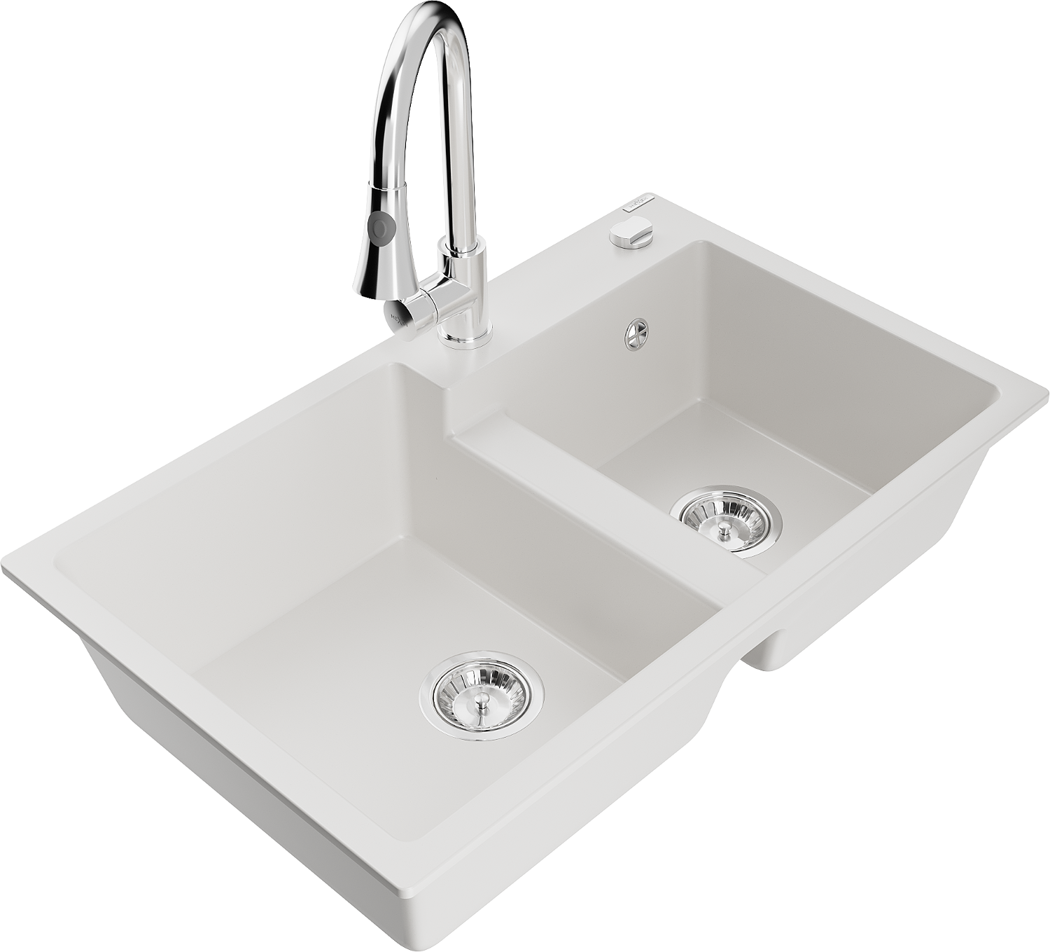 Mexen Tomas granite sink 2-chamber with Elia kitchen tap, white - 6516-20-670101-00