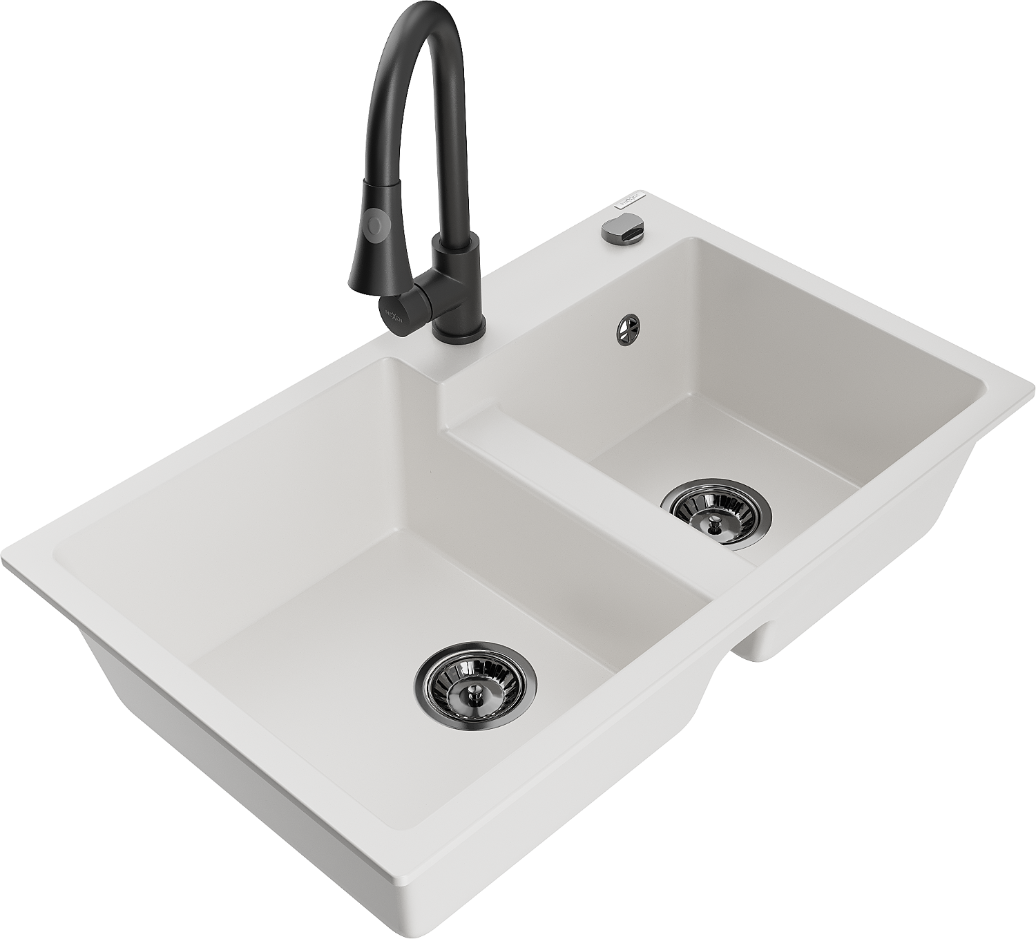 Mexen Tomas 2-basin granite sink with Elia kitchen tap, white - 6516-20-670101-70