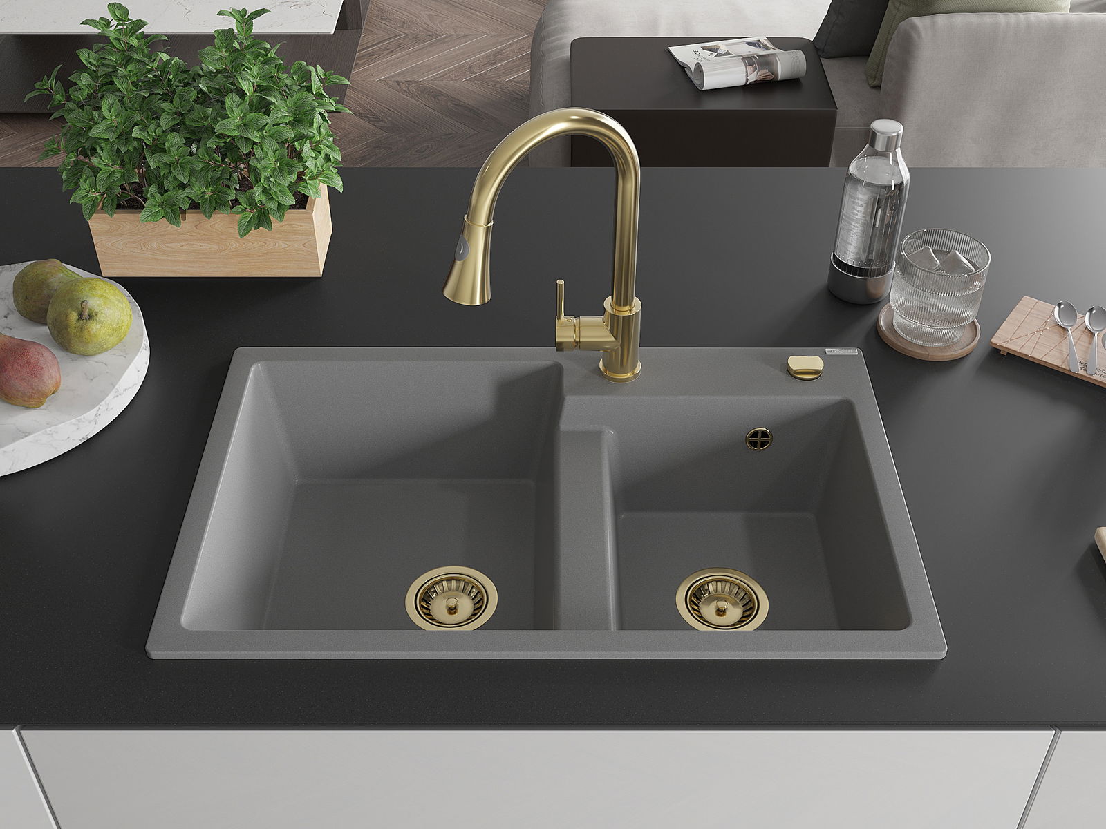 The sink is made of high quality granite. It is an elegant and, above all, practical complement to every kitchen, regardless of its style. High quality and granite durability ensure many years of use.