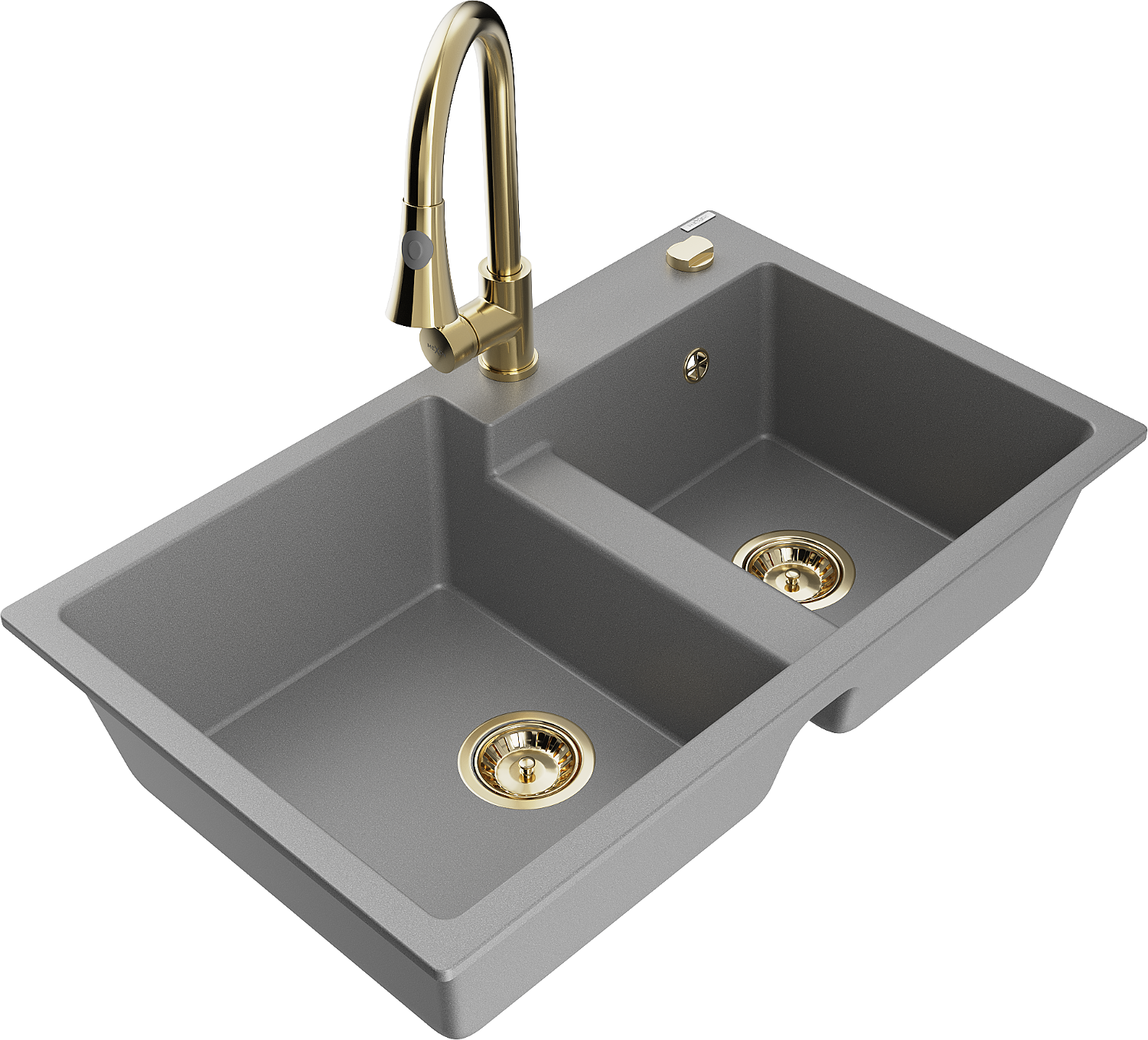 Mexen Tomas granite sink with 2 chambers and Elia kitchen tap, grey - 6516-71-670101-50