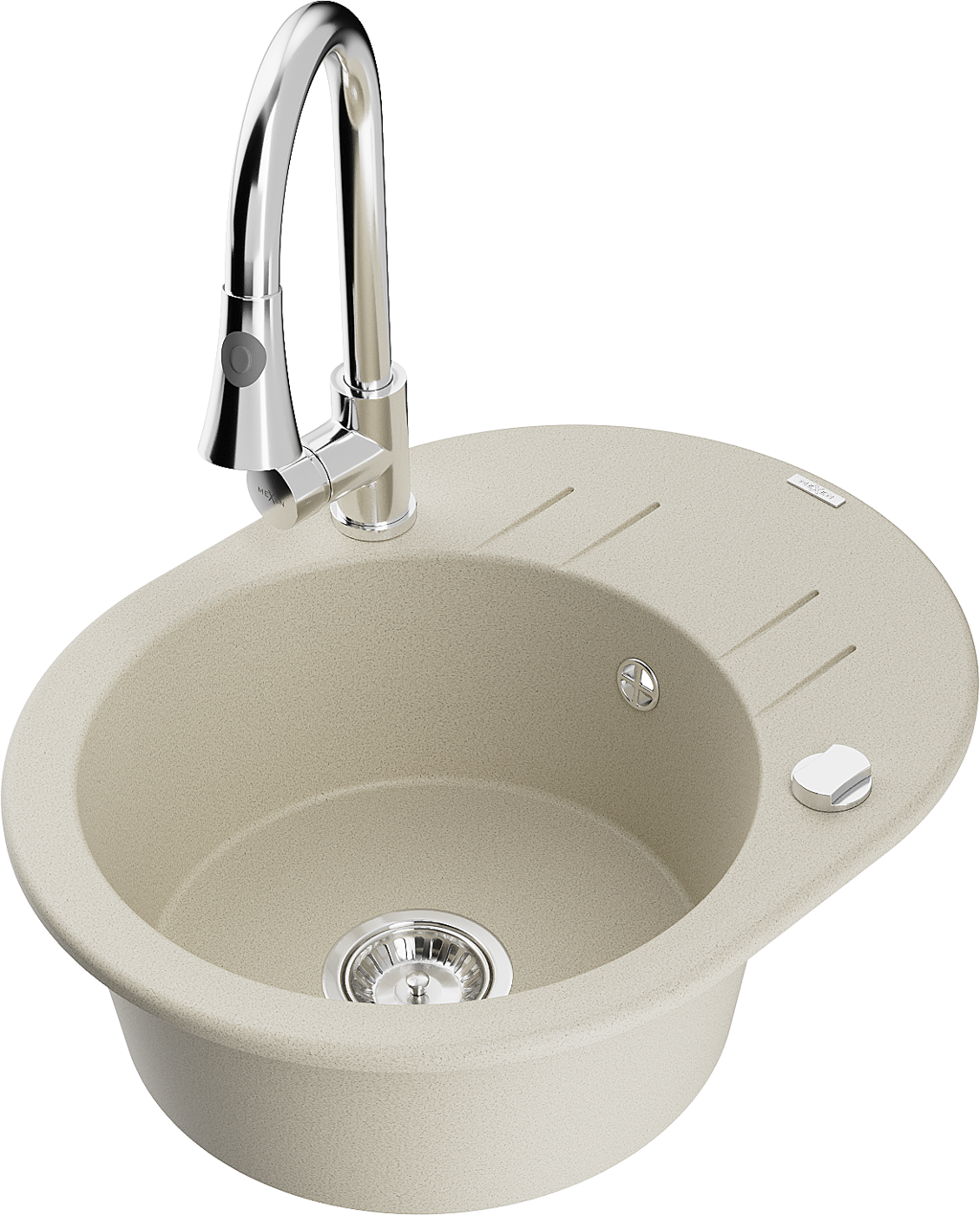 Mexen Kevin granite sink 1-bowl with drainer and Elia kitchen tap, beige - 6517-69-670101-00