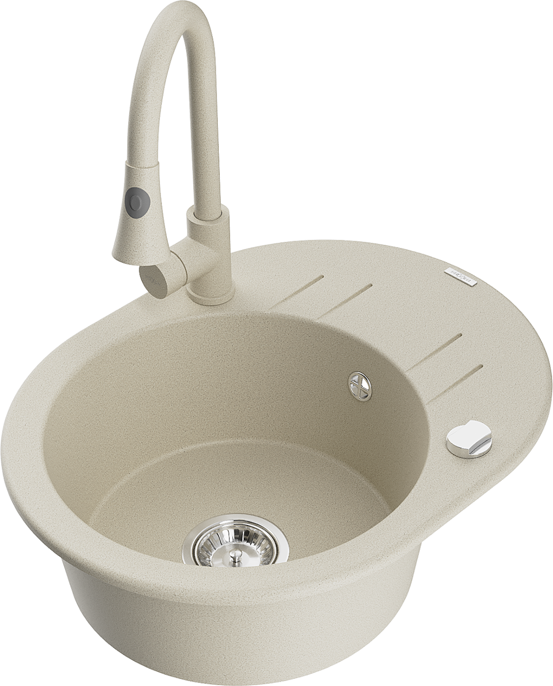 Mexen Kevin granite sink 1-bowl with drainer and Elia kitchen tap, beige - 6517-69-670101-69