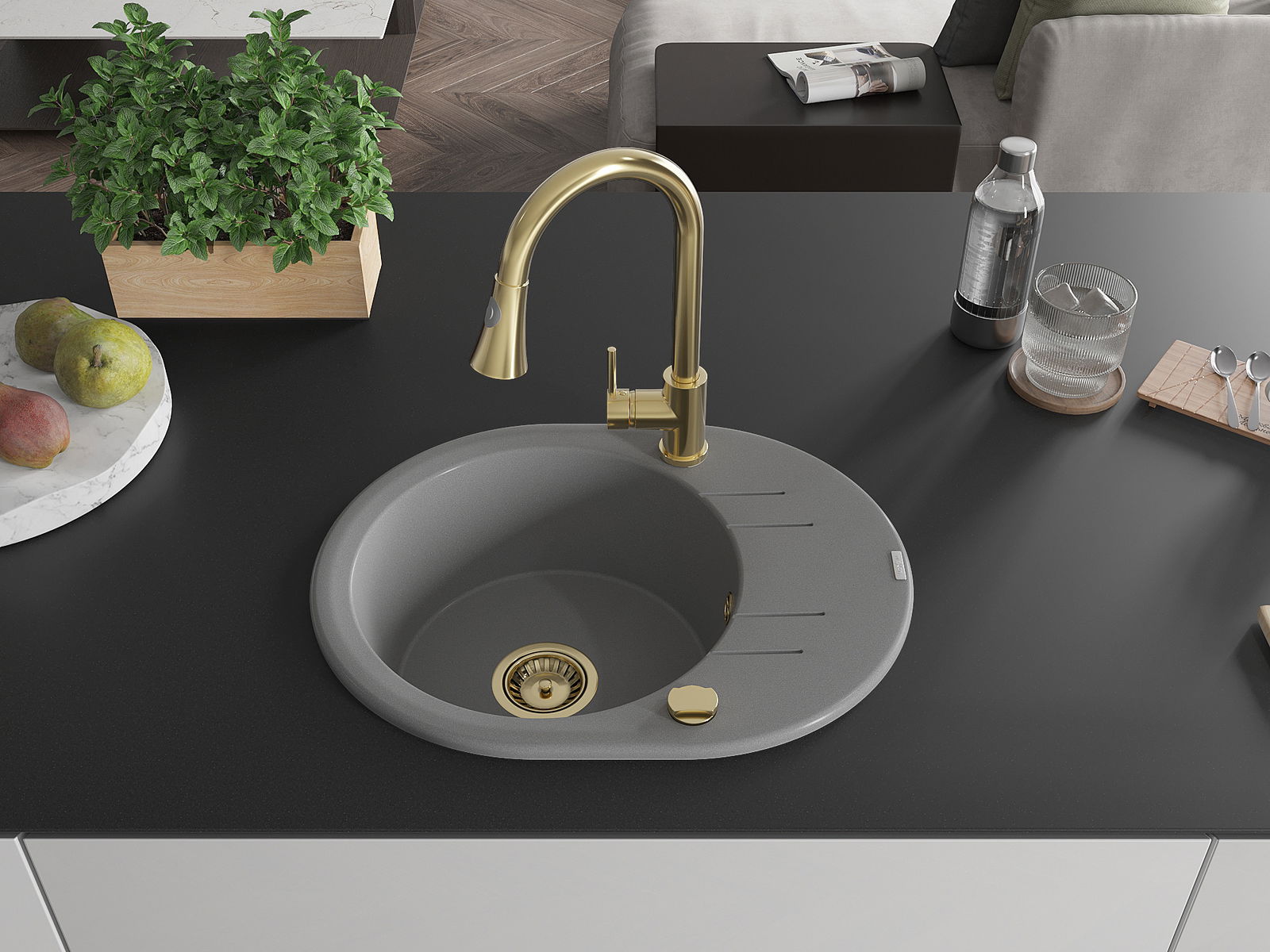 The sink is made of high quality granite. It is an elegant and, above all, practical complement to every kitchen, regardless of its style. High quality and granite durability ensure many years of use.
