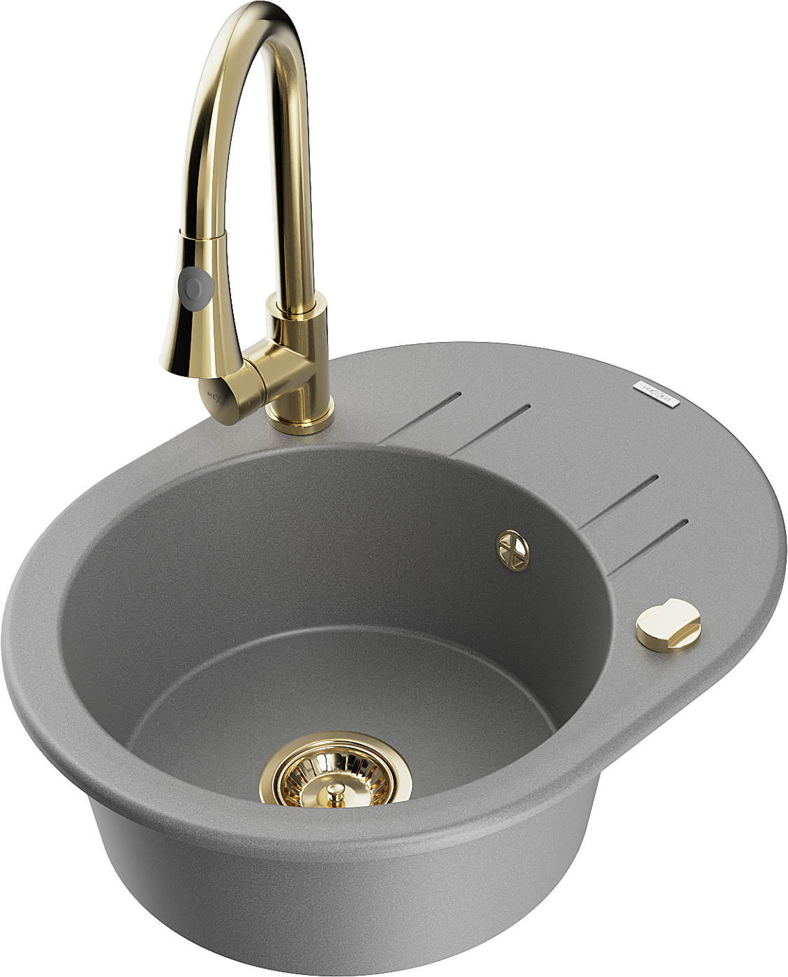 Mexen Kevin granite sink 1-bowl with drainer and Elia kitchen tap, grey - 6517-71-670101-50