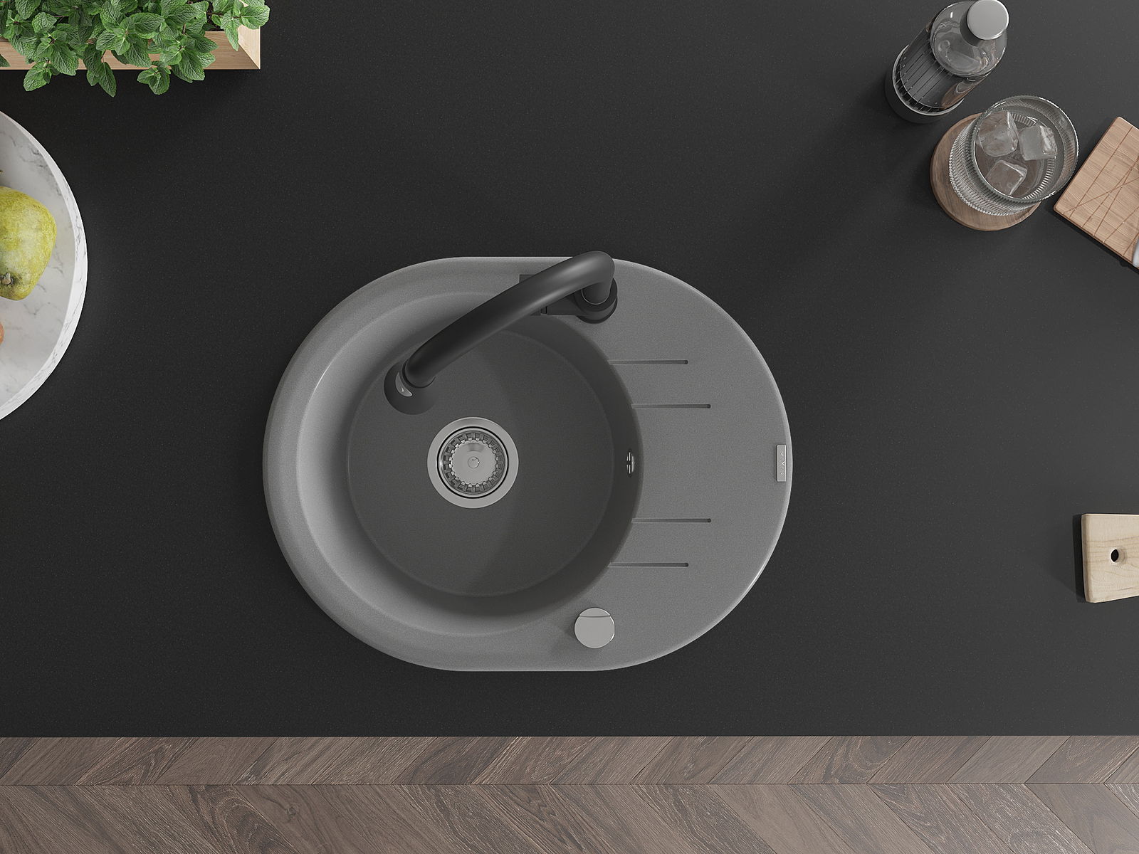 The sink is made of high quality granite. It is an elegant and, above all, practical complement to every kitchen, regardless of its style. High quality and granite durability ensure many years of use.