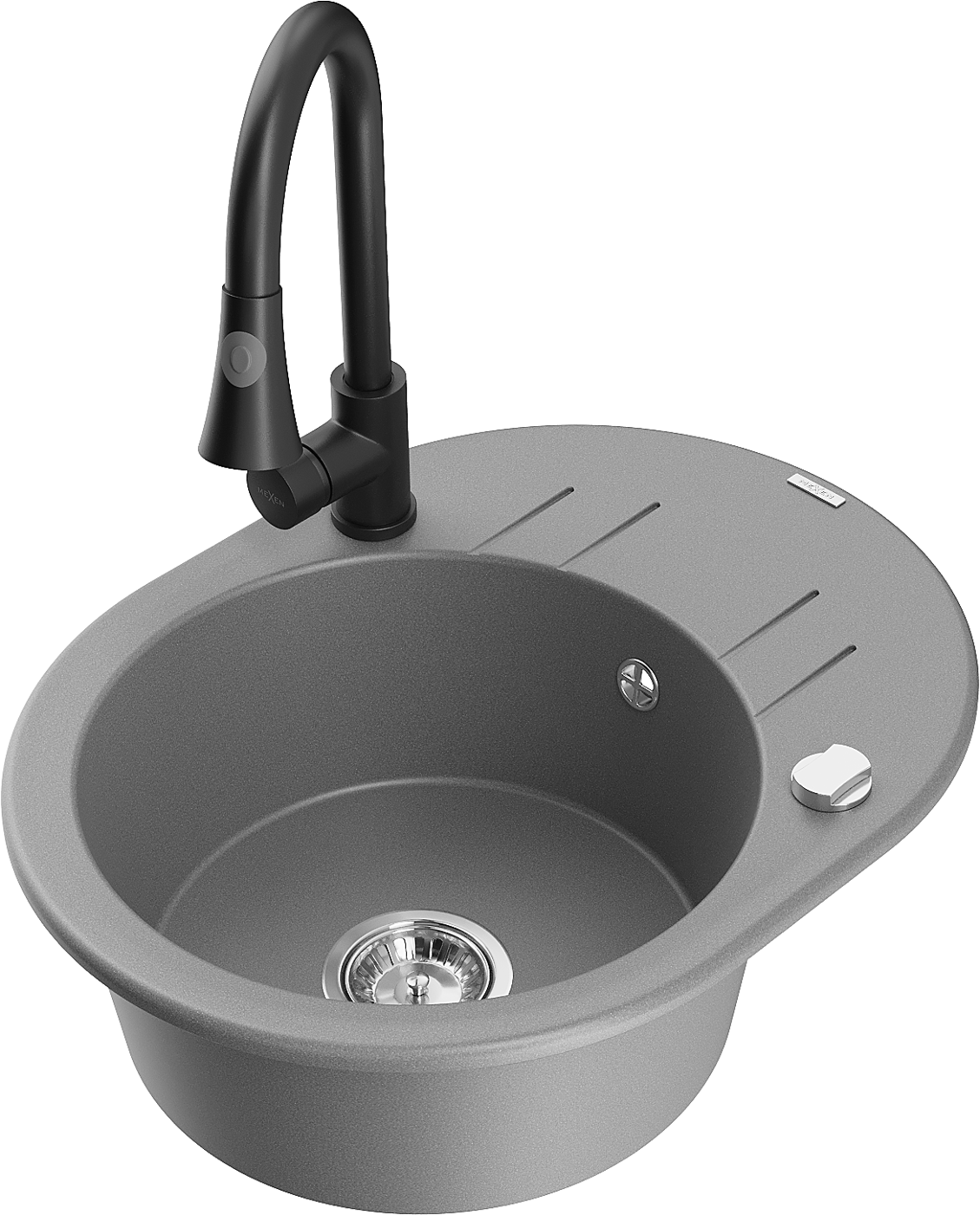 Mexen Kevin 1-bowl granite sink with drainer and Elia kitchen tap, grey - 6517-71-670101-70
