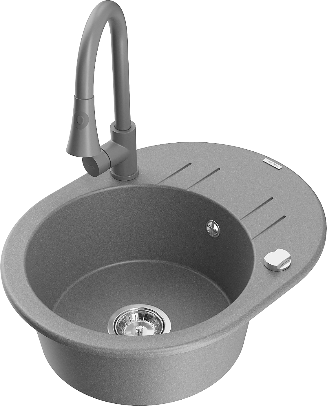 Mexen Kevin 1-bowl granite sink with drainer and Elia kitchen tap, grey - 6517-71-670101-71
