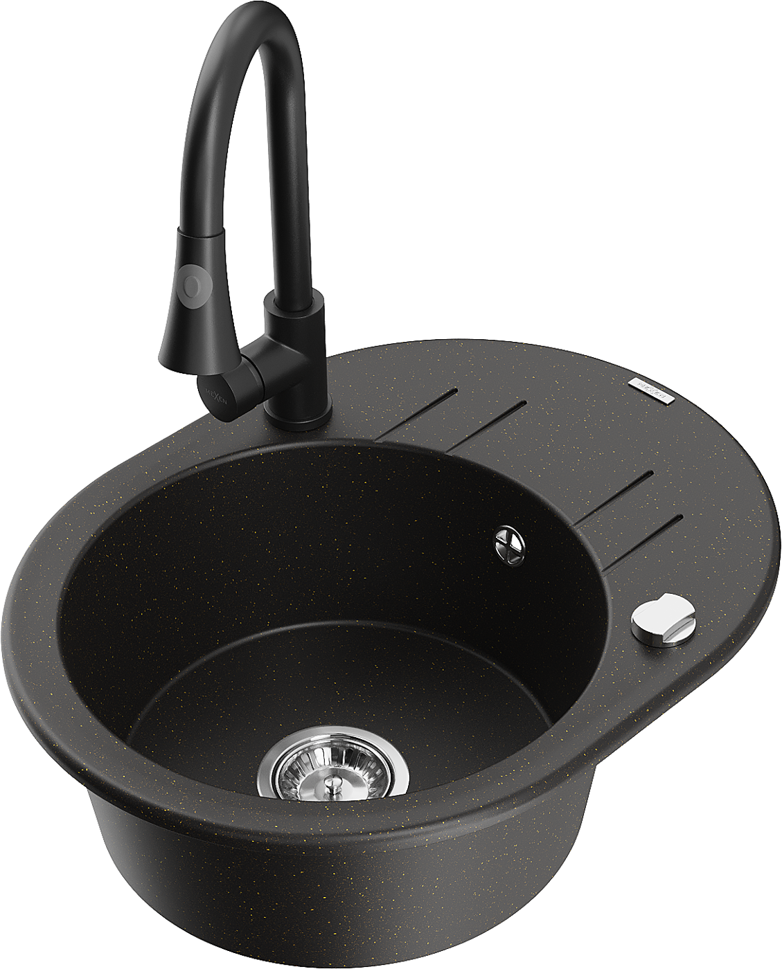 Mexen Kevin 1-bowl Granite Sink with Drainer and Elia Kitchen Tap, Black/Gold Metallic - 6517-75-670101-70