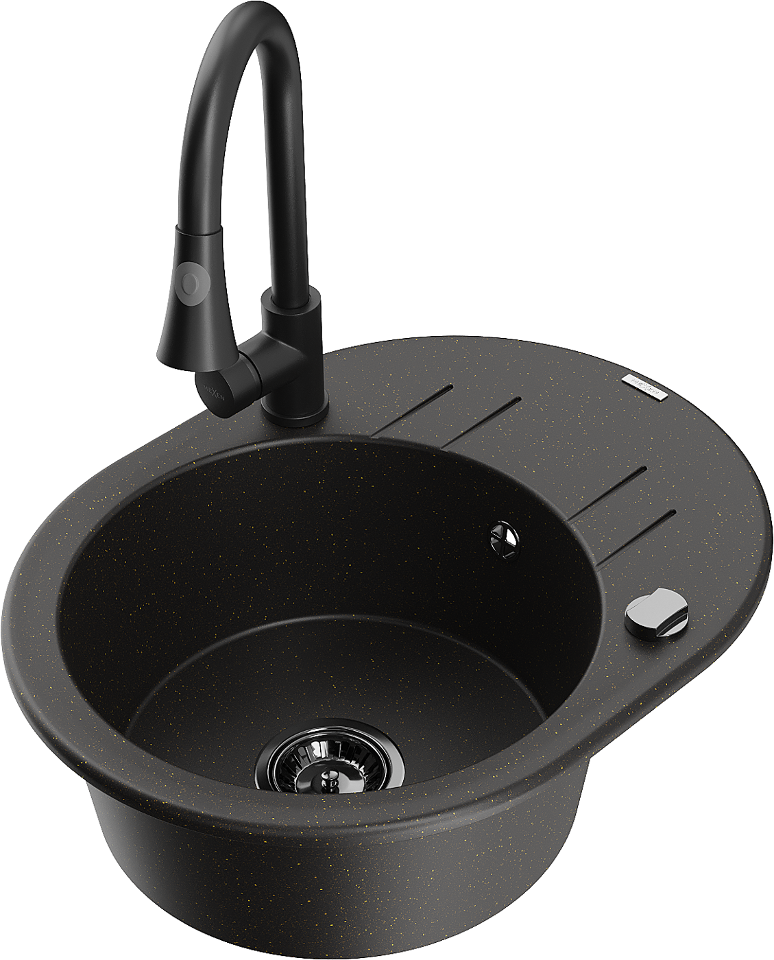 Mexen Kevin granite sink 1-bowl with drainer and Elia kitchen tap, black/gold metallic - 6517-75-670101-70-B