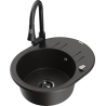 Mexen Kevin granite sink 1-bowl with drainer and Elia kitchen tap, black speckled - 6517-76-670101-70-B