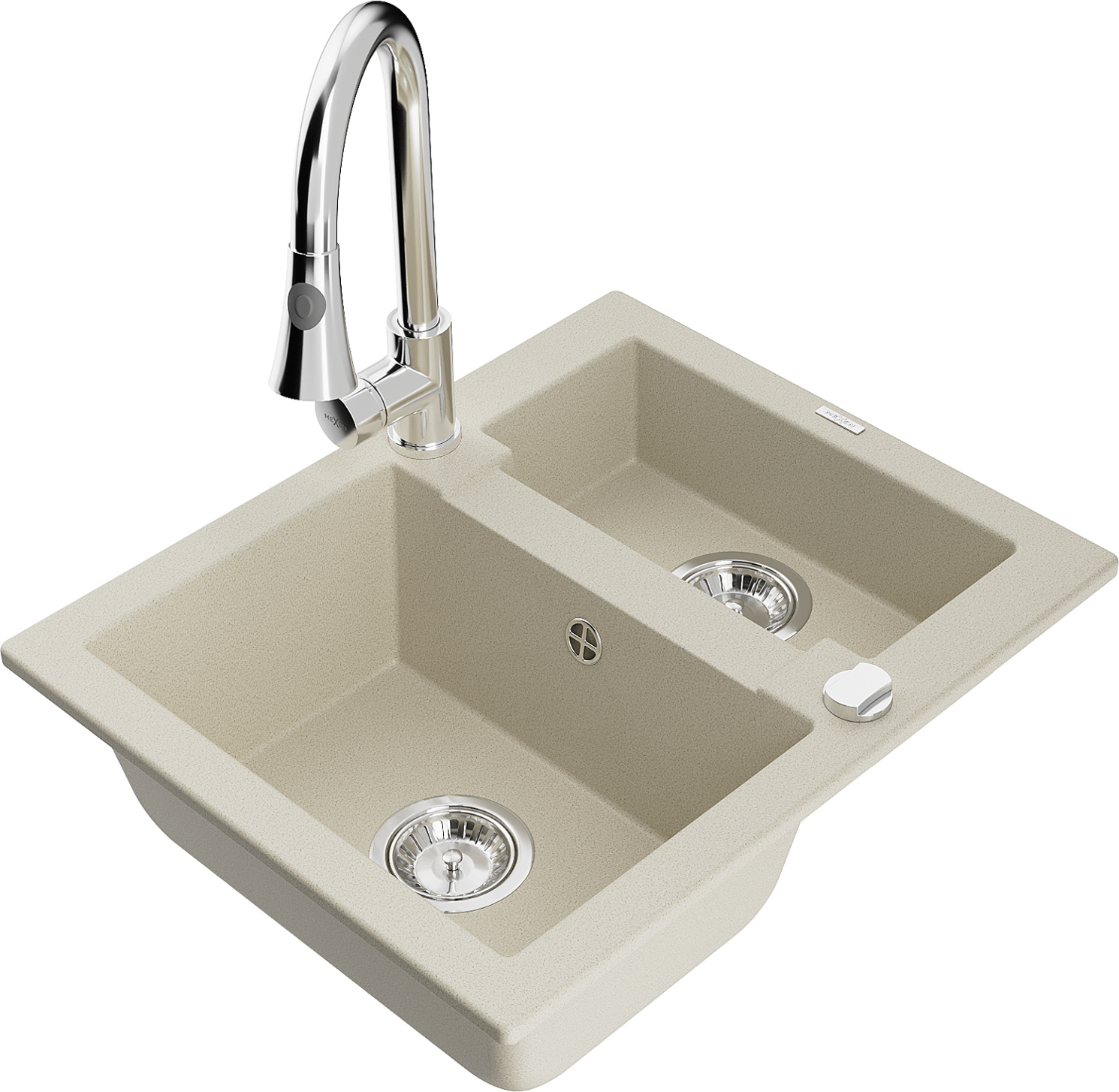 Mexen Carlos 1.5-bowl granite sink with Elia kitchen tap, beige - 6518-69-670101-00