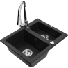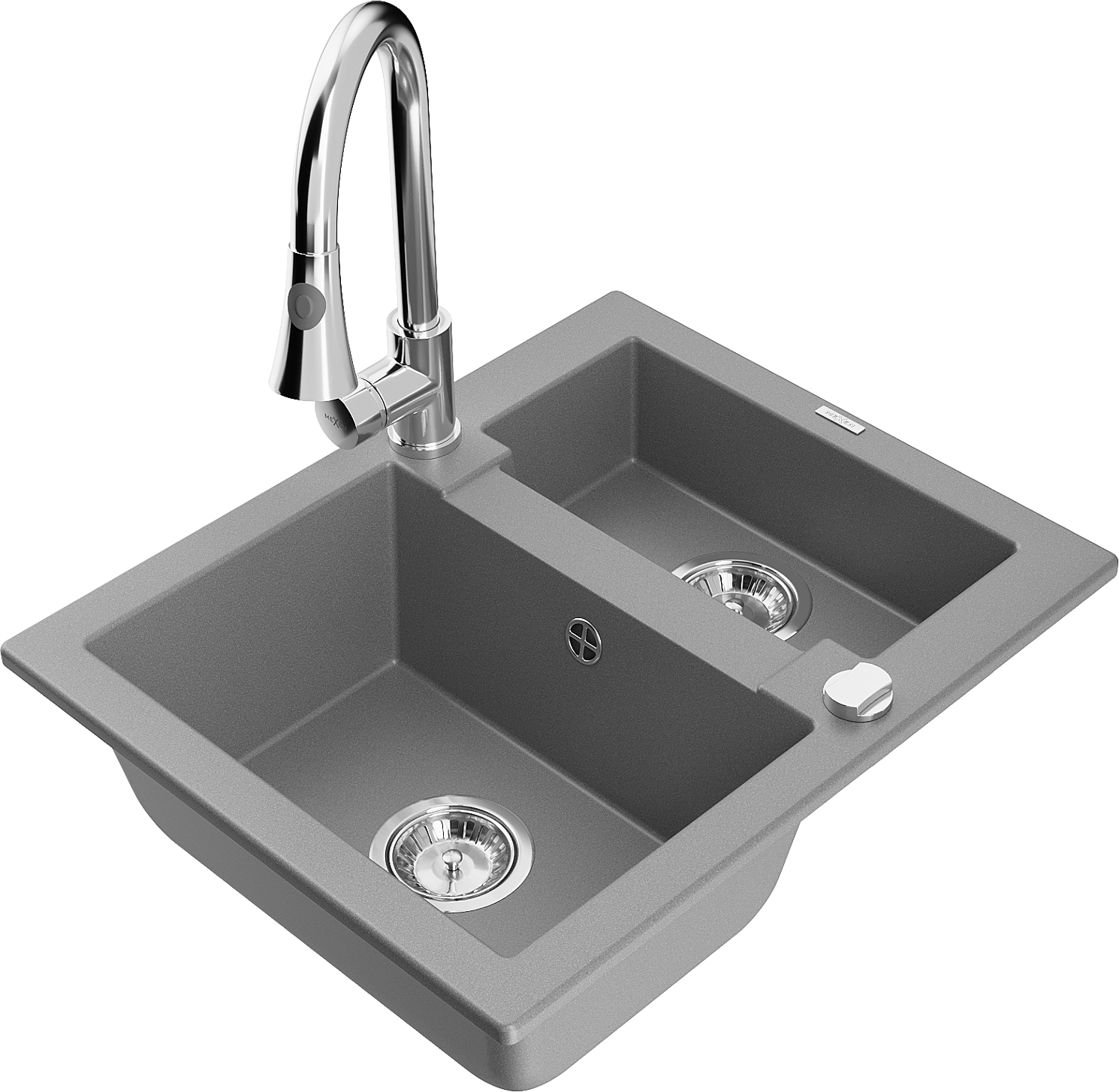 Mexen Carlos granite sink 1.5-bowl with Elia kitchen tap, grey - 6518-71-670101-00