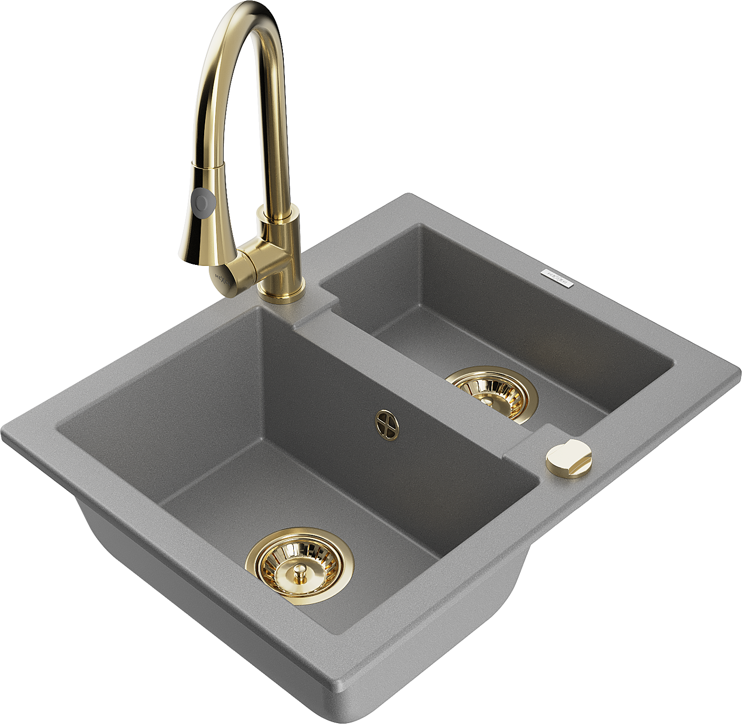 Mexen Carlos granite kitchen sink 1.5-bowl with Elia kitchen tap, grey - 6518-71-670101-50