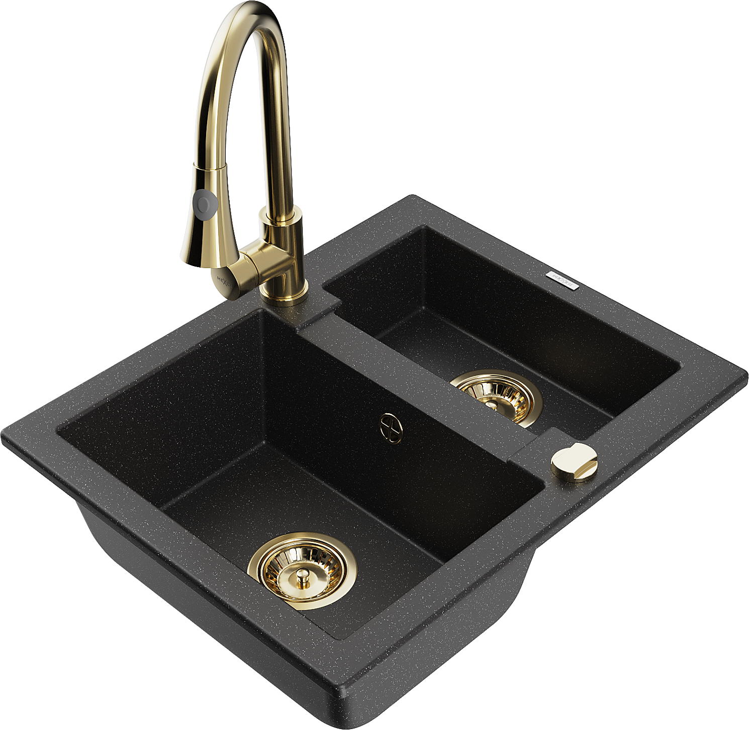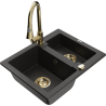 Mexen Carlos granite sink 1.5-bowl with Elia kitchen tap, black/silver metallic - 6518-73-670101-50