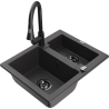 Mexen Carlos granite sink 1.5-bowl with Elia kitchen tap, black/silver metallic - 6518-73-670101-70-B