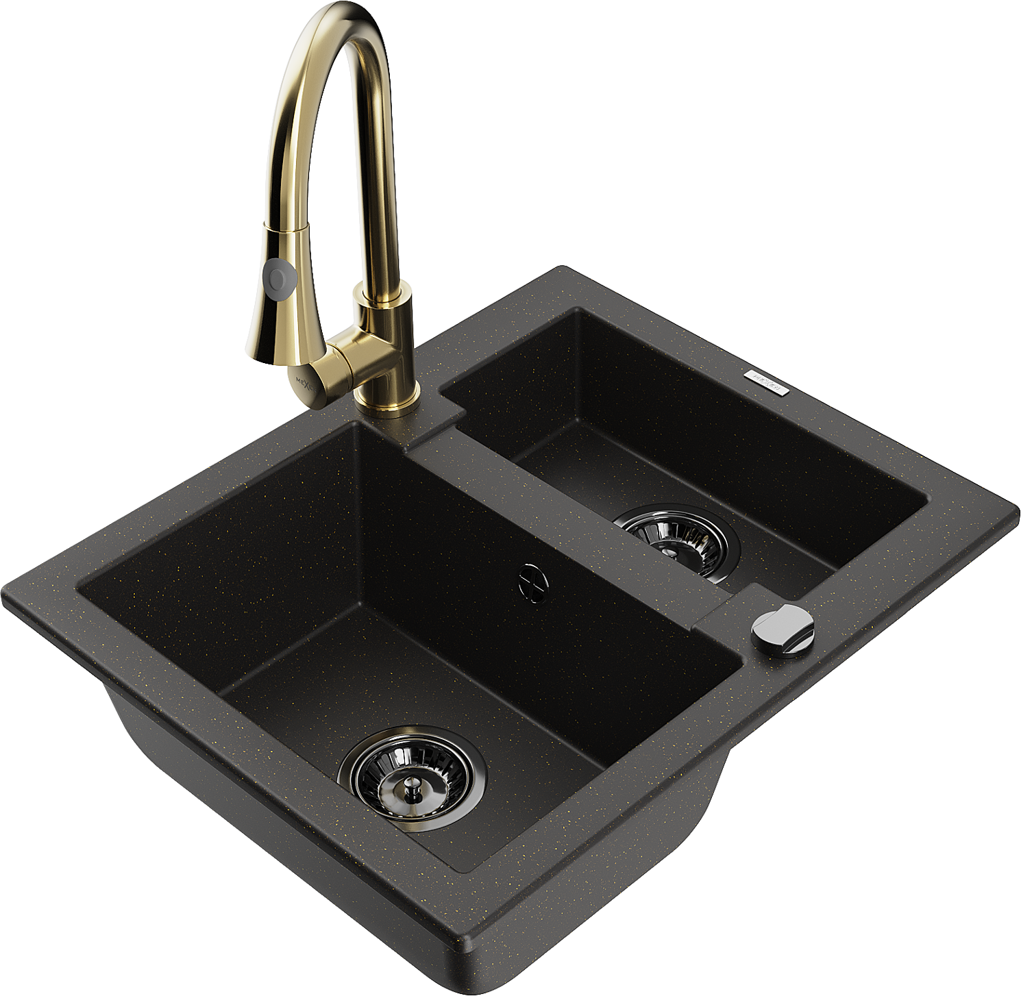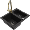 Mexen Carlos 1.5-bowl granite sink with Elia kitchen tap, black/gold metallic - 6518-75-670101-50-B