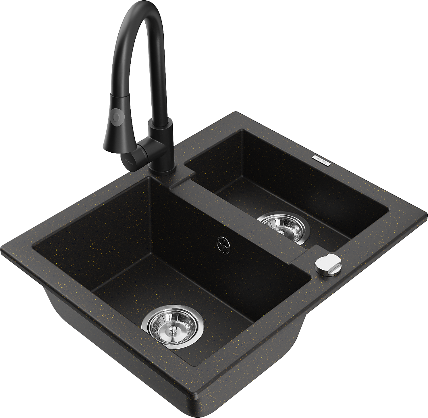 Mexen Carlos 1.5-bowl granite sink with Elia kitchen tap, black/gold metallic - 6518-75-670101-70