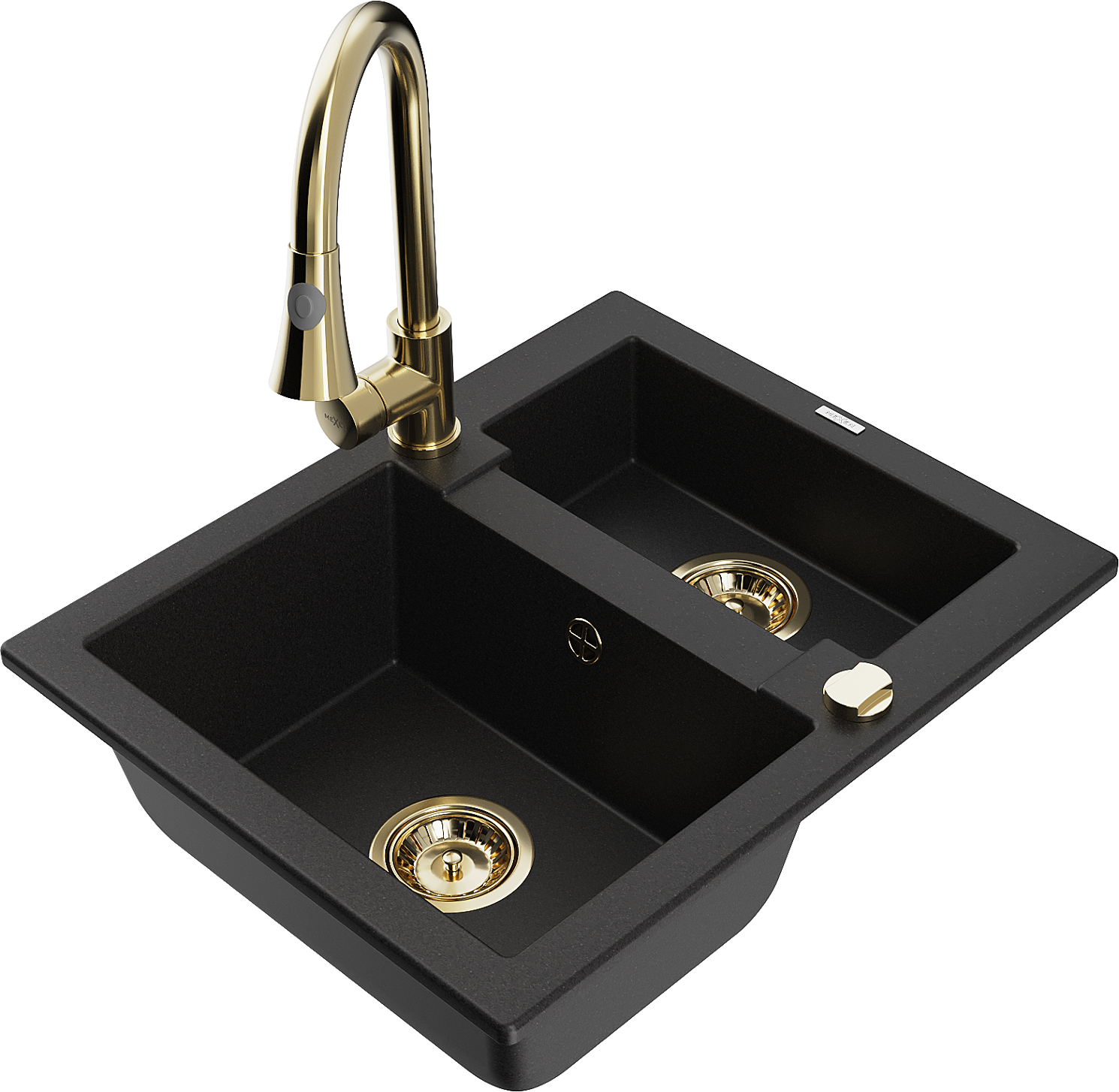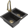 Mexen Carlos granite sink 1.5-bowl with Elia kitchen tap, black - 6518-77-670101-50