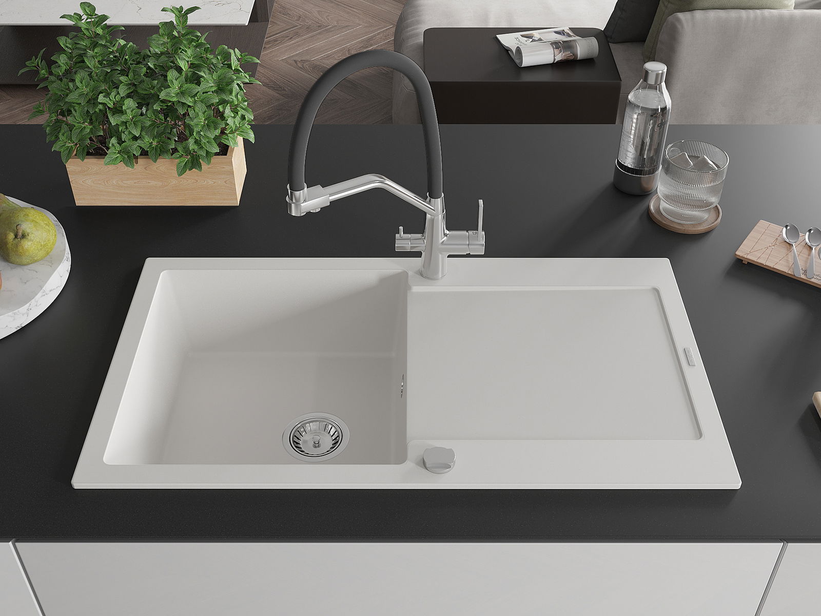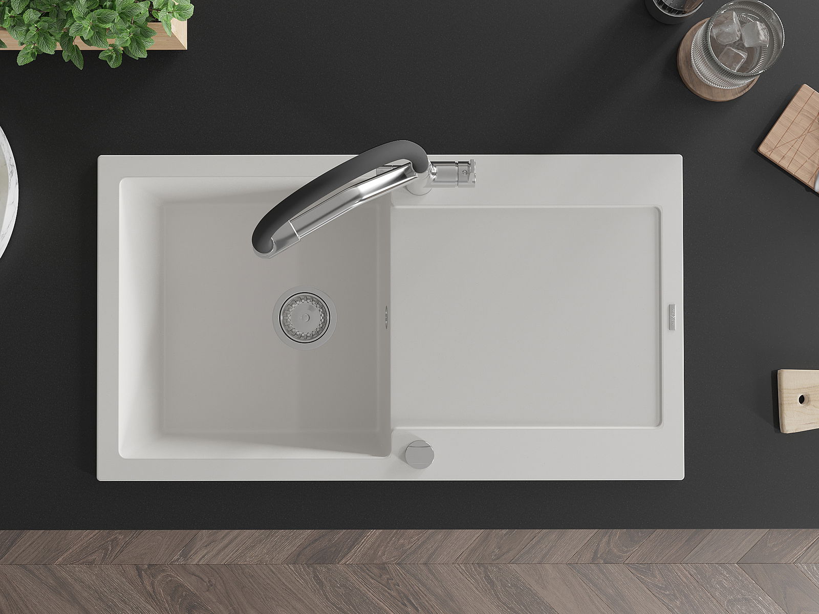 The sink is made of high quality granite. It is an elegant and, above all, practical complement to every kitchen, regardless of its style. High quality and granite durability ensure many years of use.