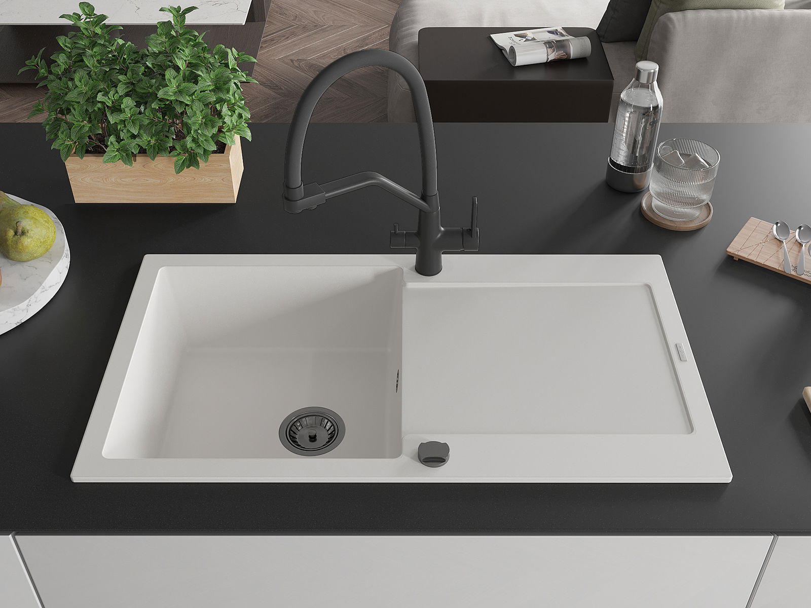 The surface of the sink is resistant to stains and discoloration, thanks to which it is easy to clean and retains its color for a long time. Aesthetic and practically complementing every kitchen.