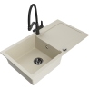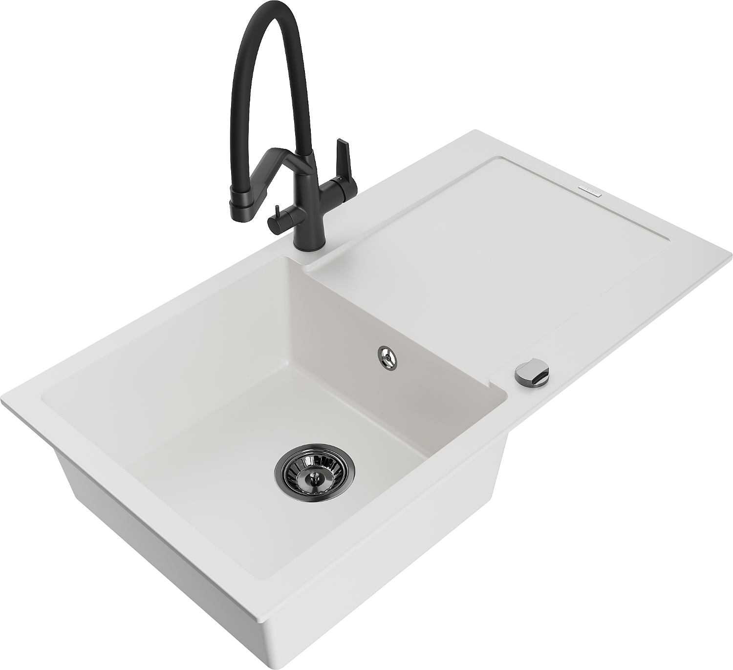 Mexen Leo granite sink 1-bowl with drainer and Duo kitchen tap, white - 6501-20-671701-70-B