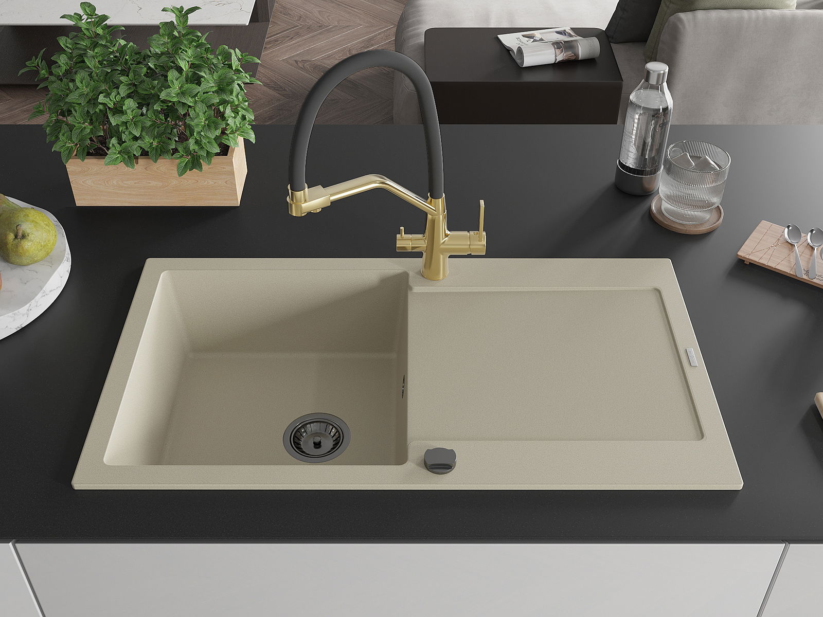 The sink is made of high quality granite. It is an elegant and, above all, practical complement to every kitchen, regardless of its style. High quality and granite durability ensure many years of use.