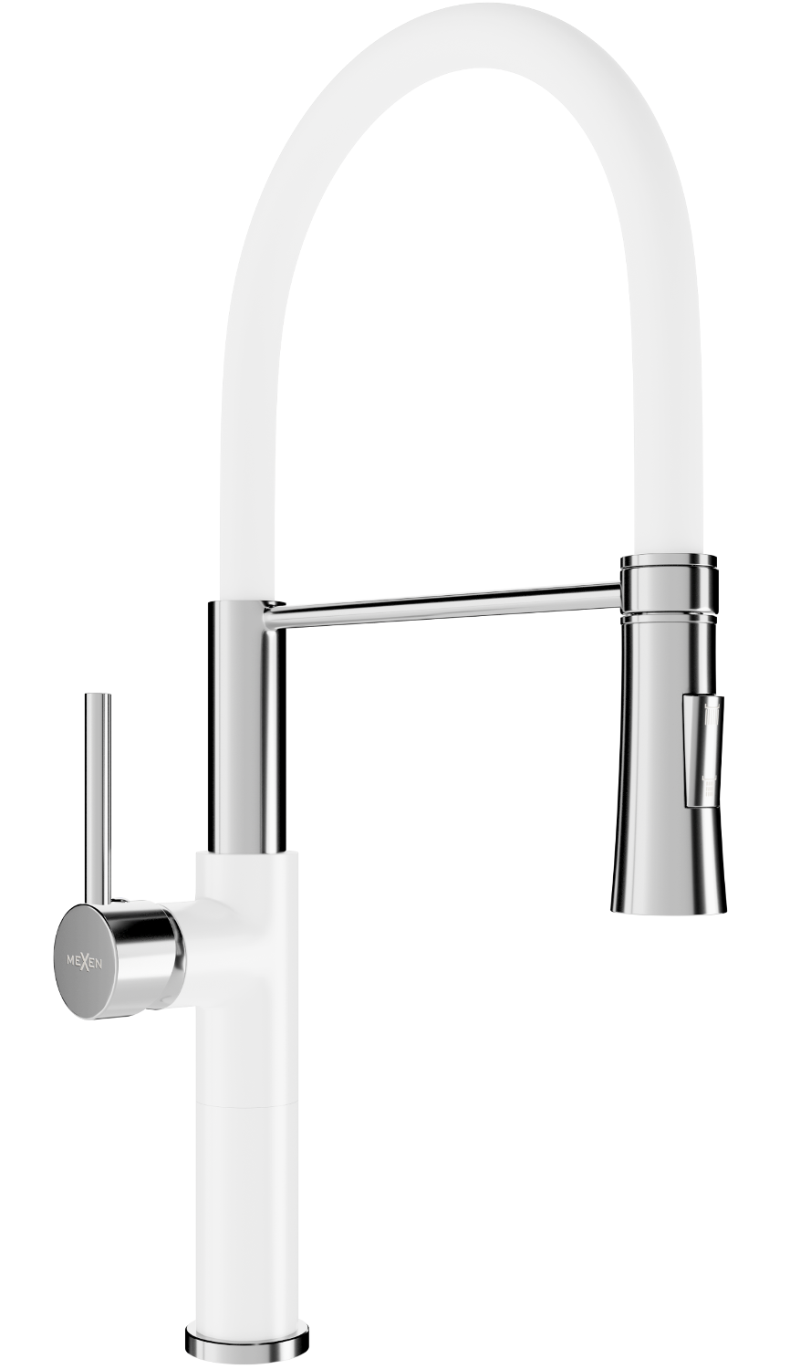 Batteries with a silicone spout and a brass support are a practical solution in the kitchen. Their elasticity allows 360 ° rotation, which definitely facilitates rinsing the vessels, cleaning the sink and filling with a vase or pot.