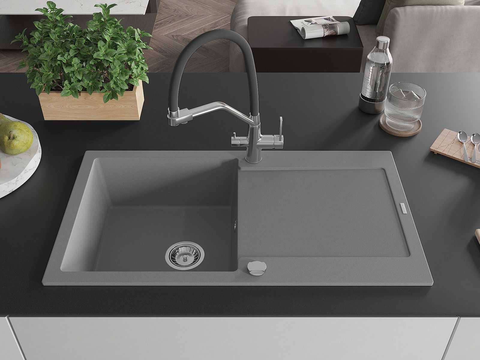 The sink is made of high quality granite. It is an elegant and, above all, practical complement to every kitchen, regardless of its style. High quality and granite durability ensure many years of use.