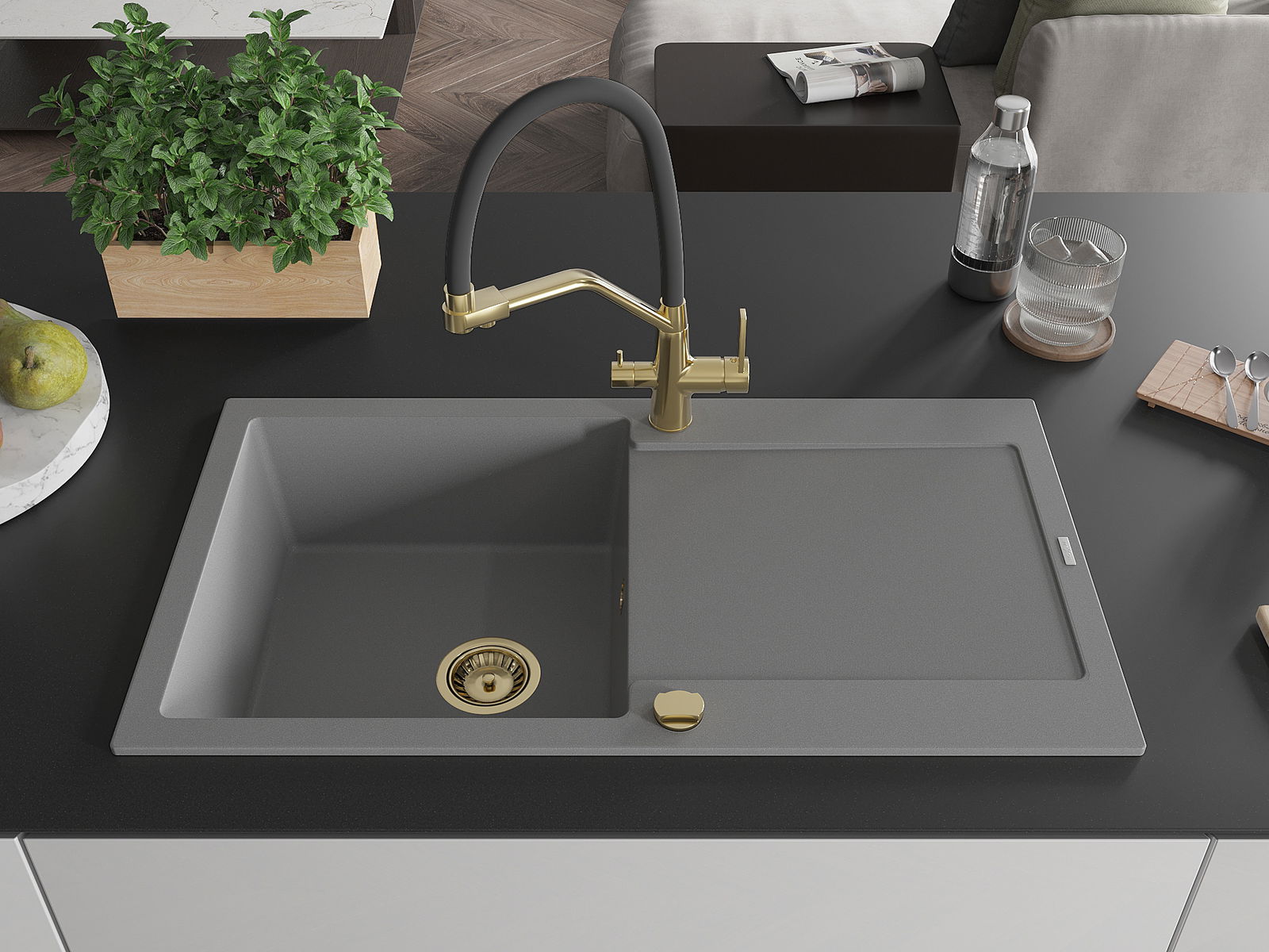 The surface of the sink is resistant to stains and discoloration, thanks to which it is easy to clean and retains its color for a long time. Aesthetic and practically complementing every kitchen.
