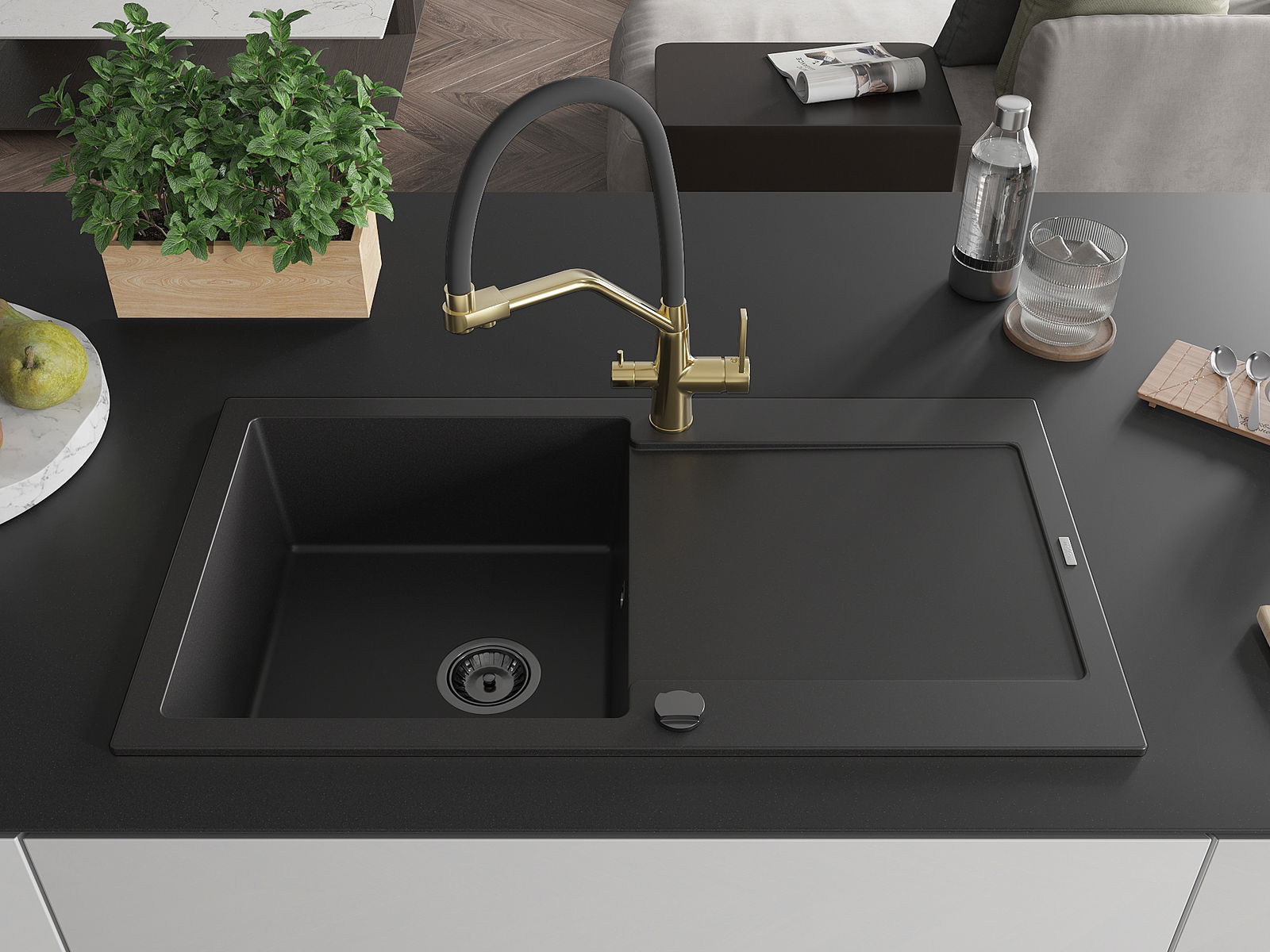 The sink is made of high quality granite. It is an elegant and, above all, practical complement to every kitchen, regardless of its style. High quality and granite durability ensure many years of use.