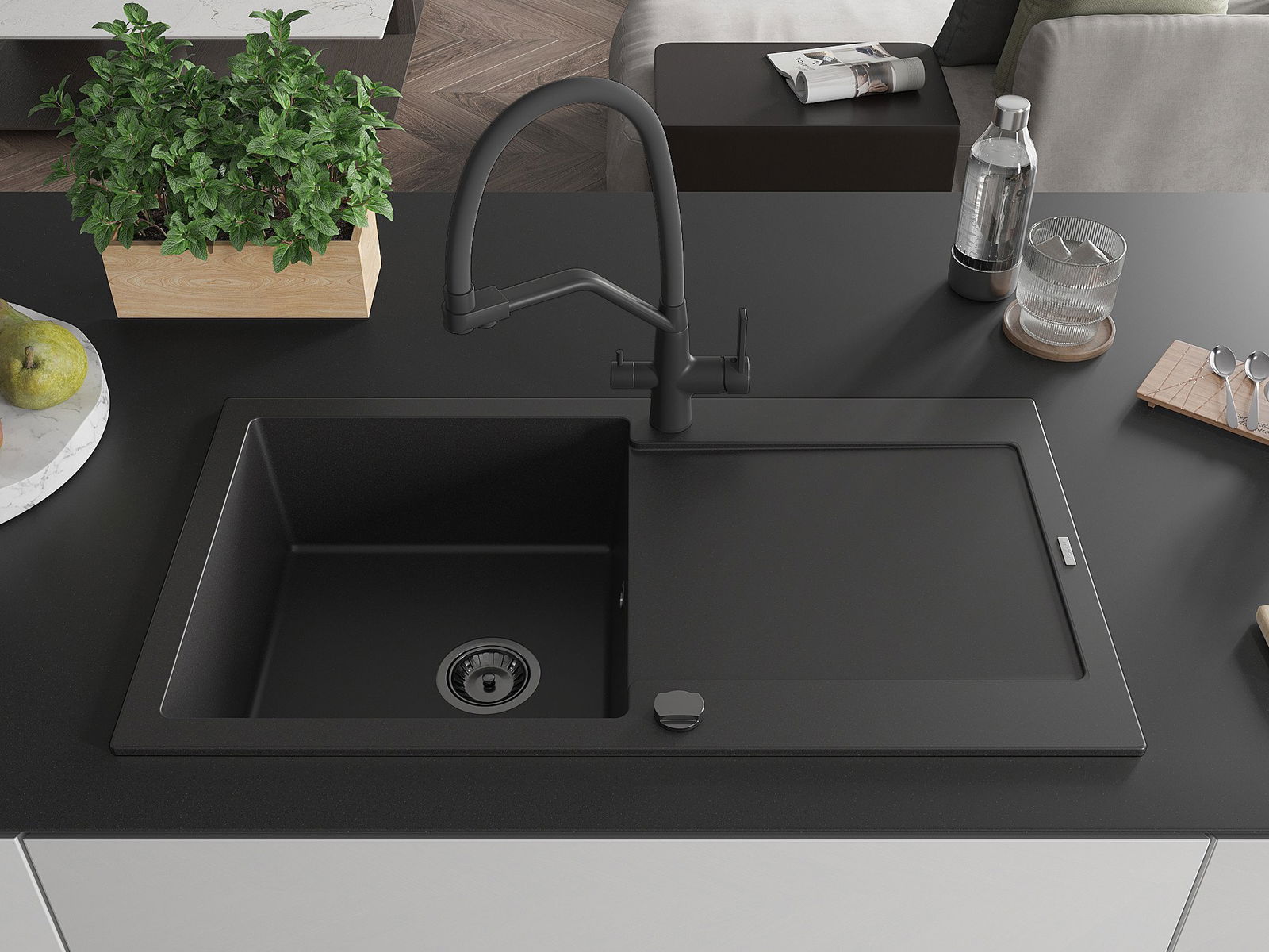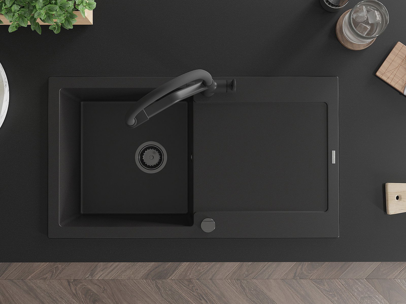 The sink is made of high quality granite. It is an elegant and, above all, practical complement to every kitchen, regardless of its style. High quality and granite durability ensure many years of use.