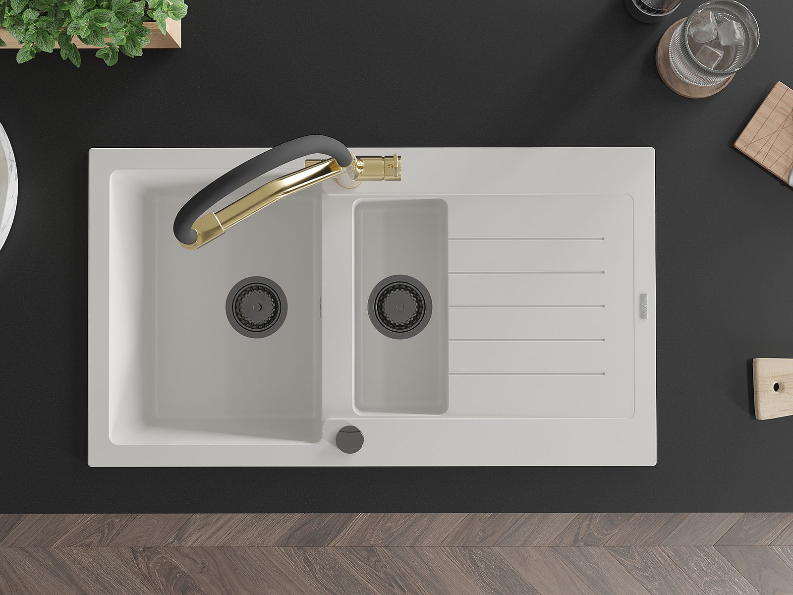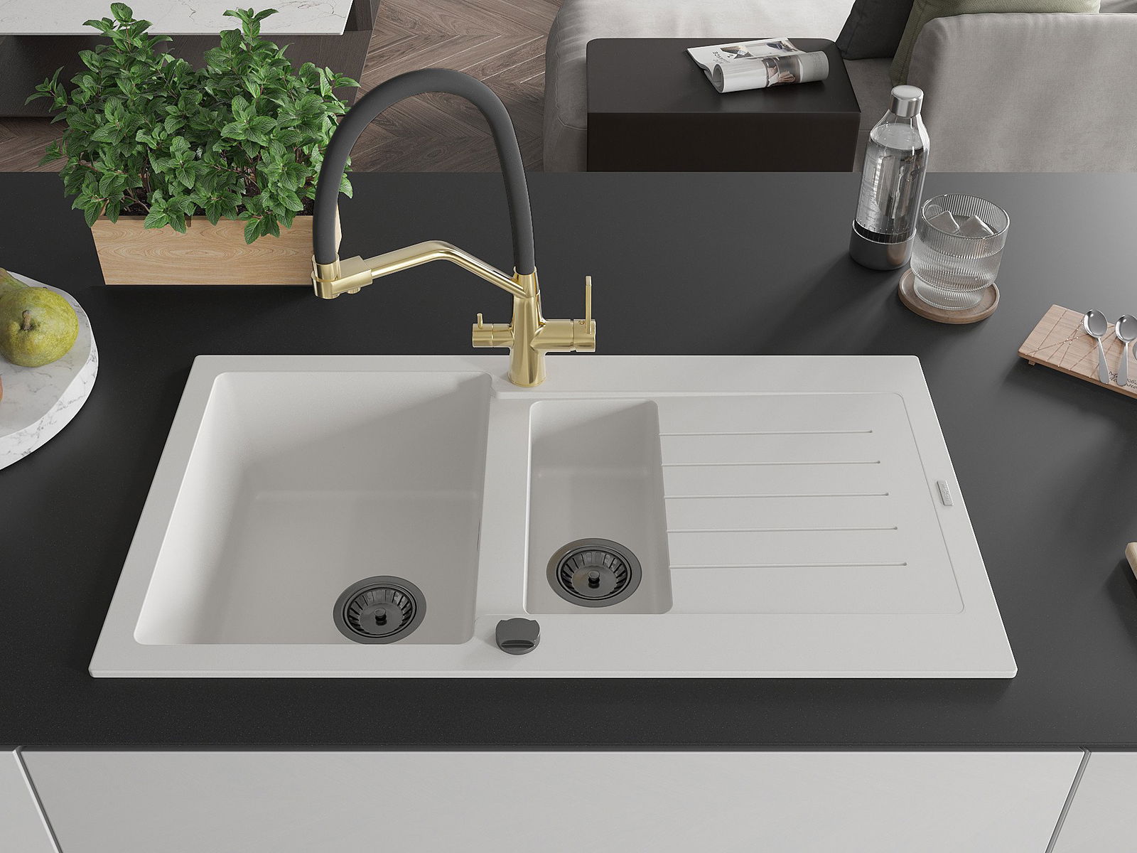 The sink is made of high quality granite. It is an elegant and, above all, practical complement to every kitchen, regardless of its style. High quality and granite durability ensure many years of use.