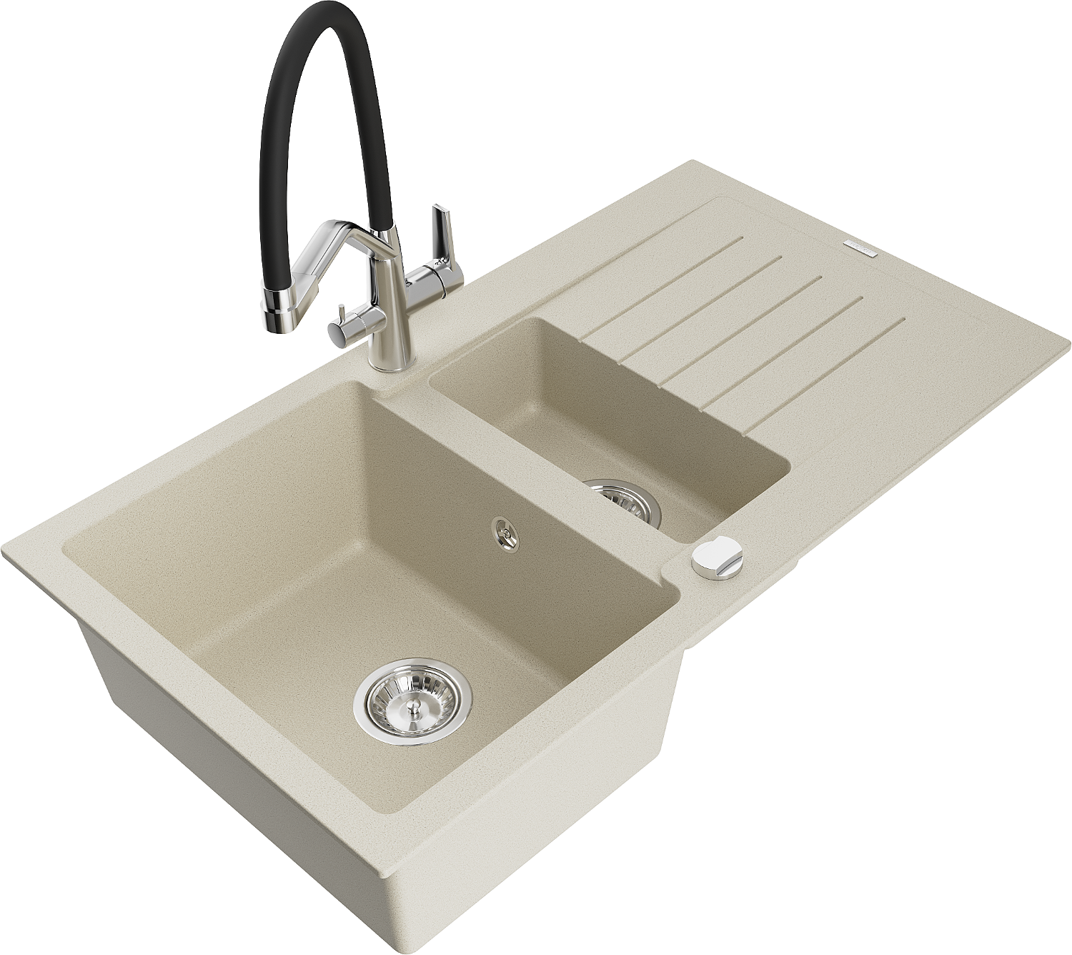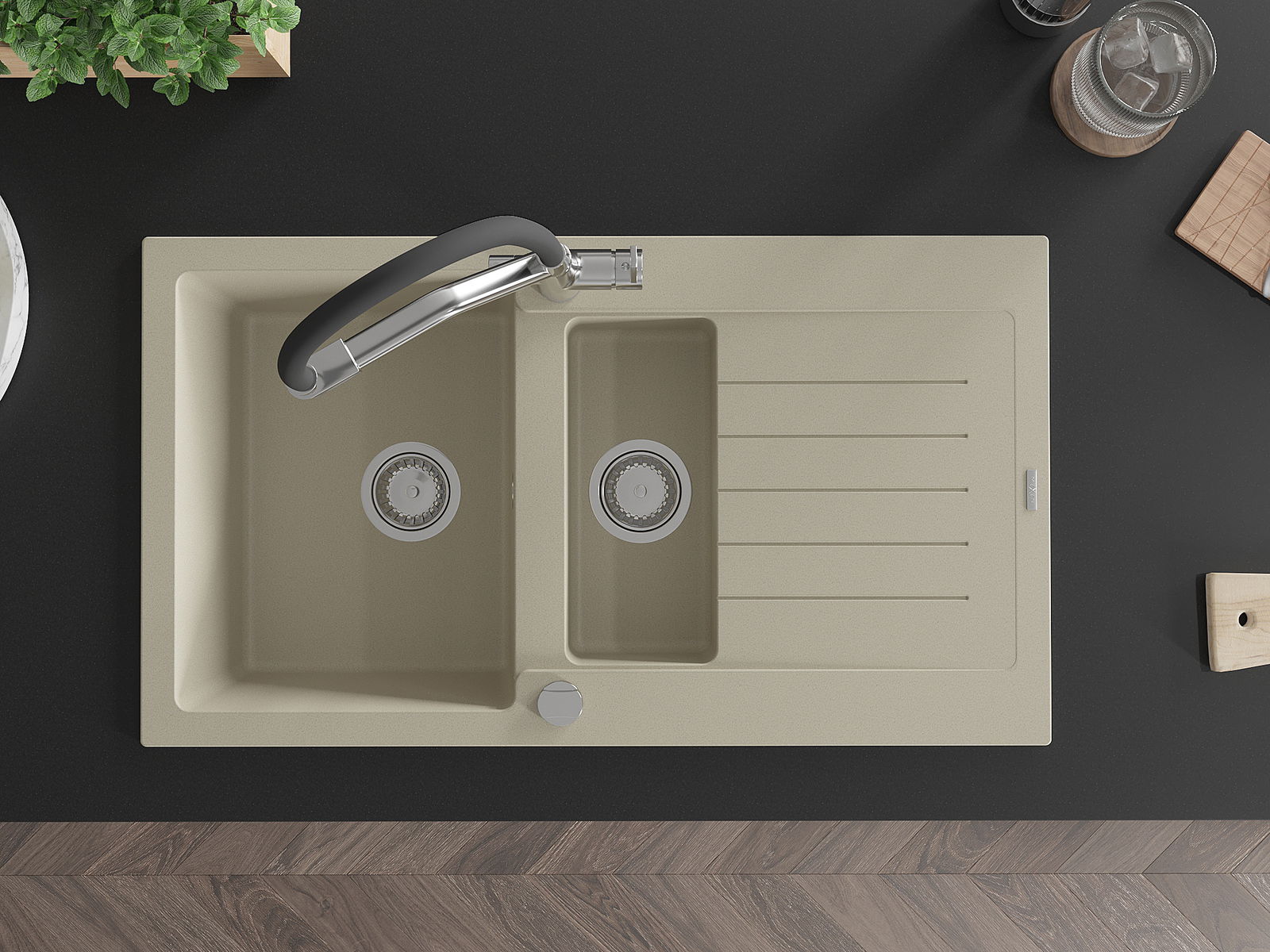 Mexen Matias granite sink 1.5 bowl with drainer and Duo kitchen tap, beige - 6502-69-671701-07