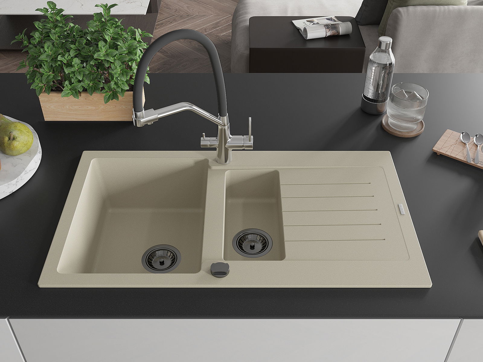 The sink is made of high quality granite. It is an elegant and, above all, practical complement to every kitchen, regardless of its style. High quality and granite durability ensure many years of use.