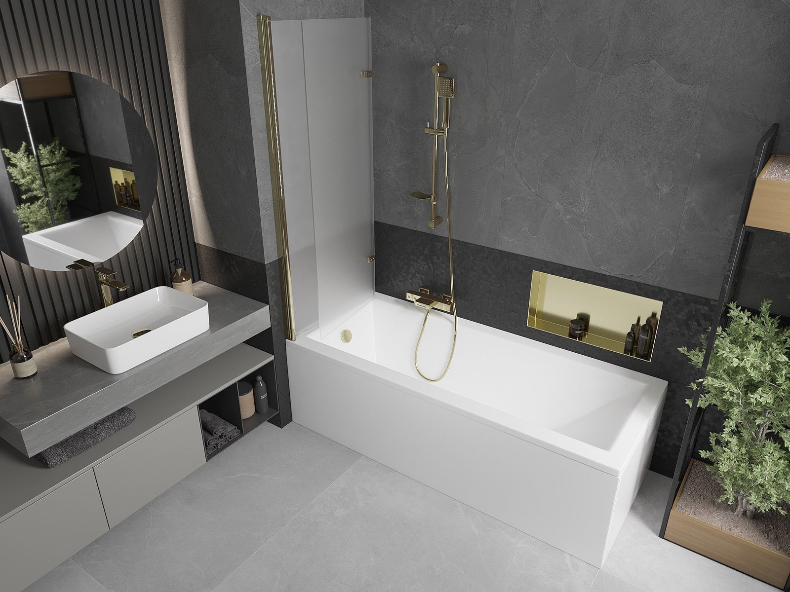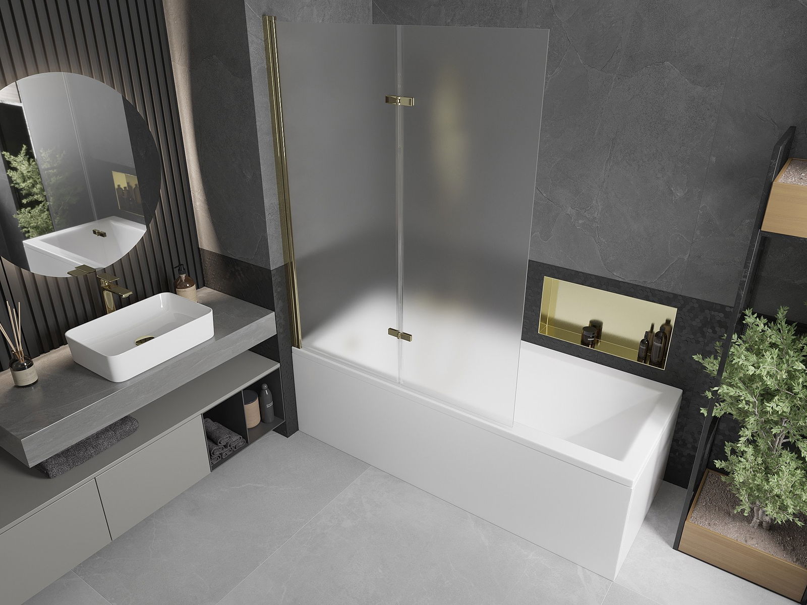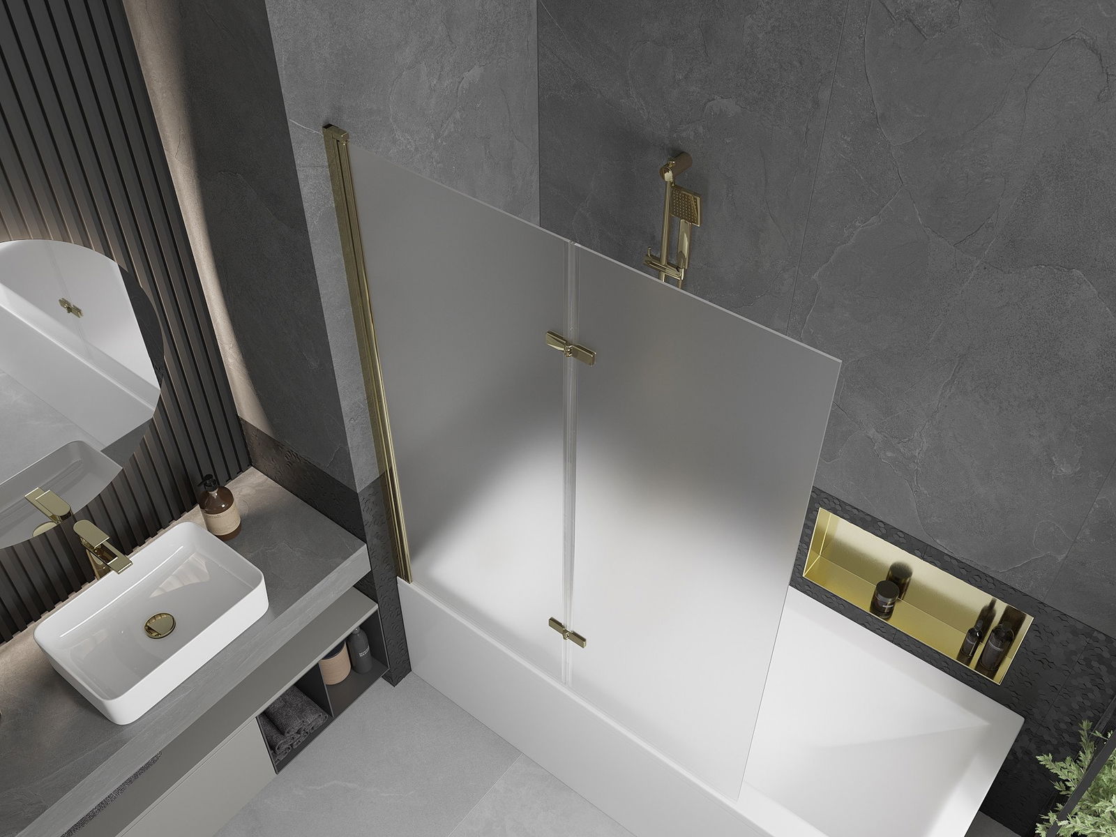 The screen is made of two wings with the possibility of folding. This solution saves more space in the bathroom and allows you to freely use the remaining space when we do not use the bathing area.