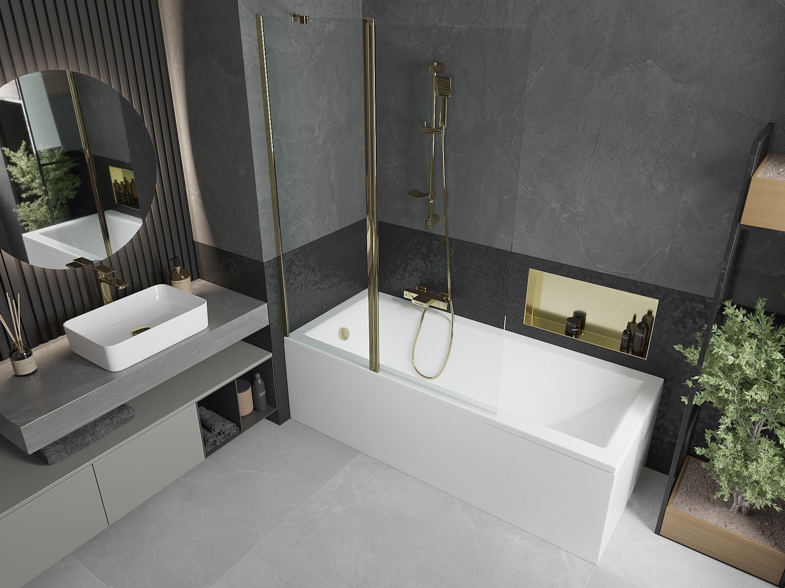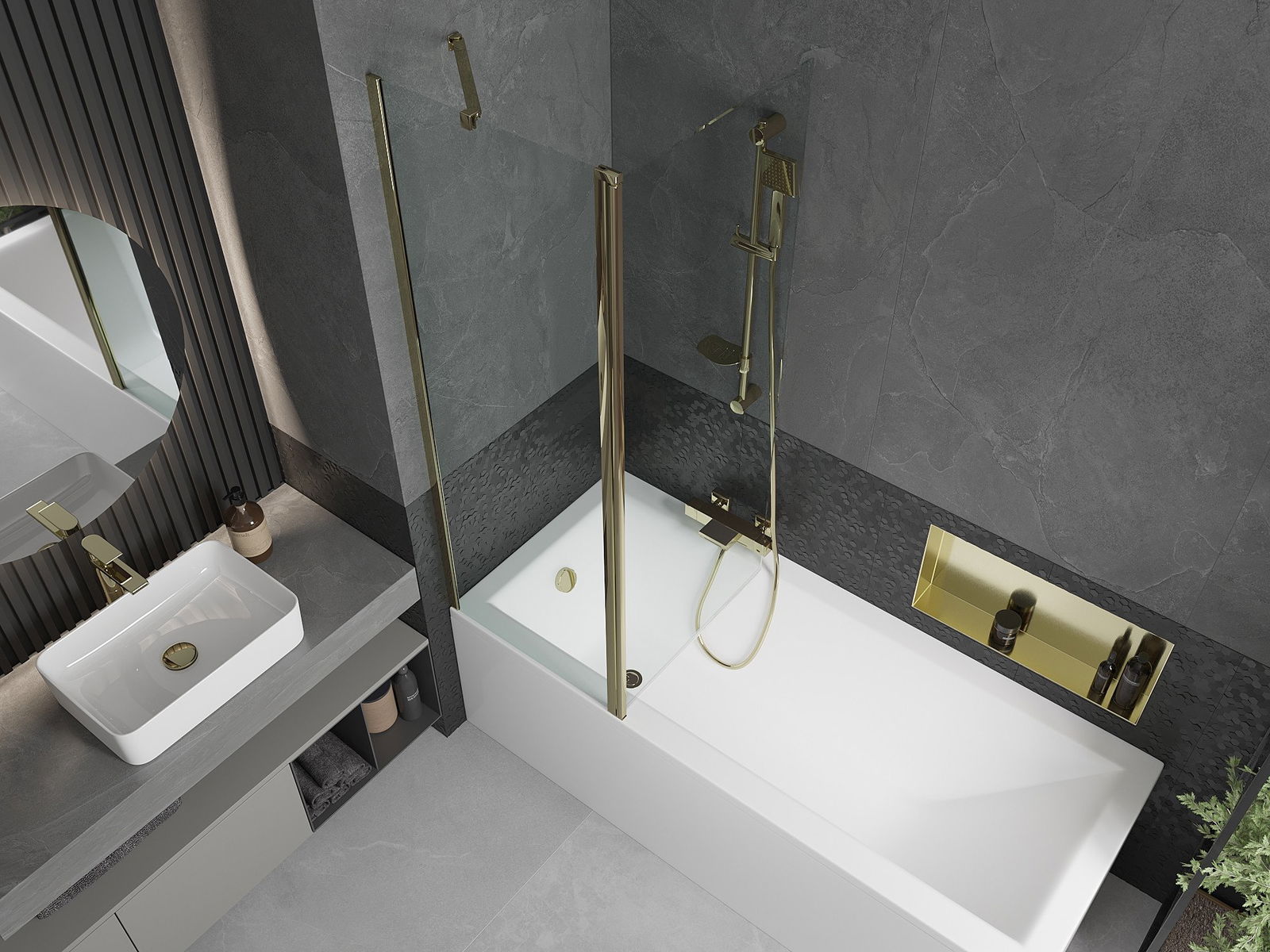 The screen has one moving wing with the possibility of folding. This solution saves more space in the bathroom and allows you to freely use the remaining space when we do not use the bathing area.