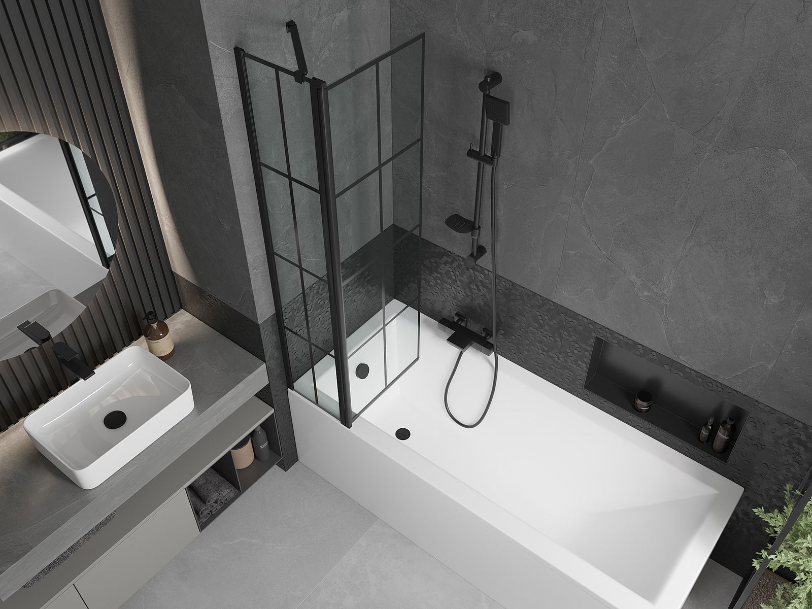The screen has one movable wing that can be folded. This solution saves more space in the bathroom and allows free use of the remaining space when the bathing area is not in use.