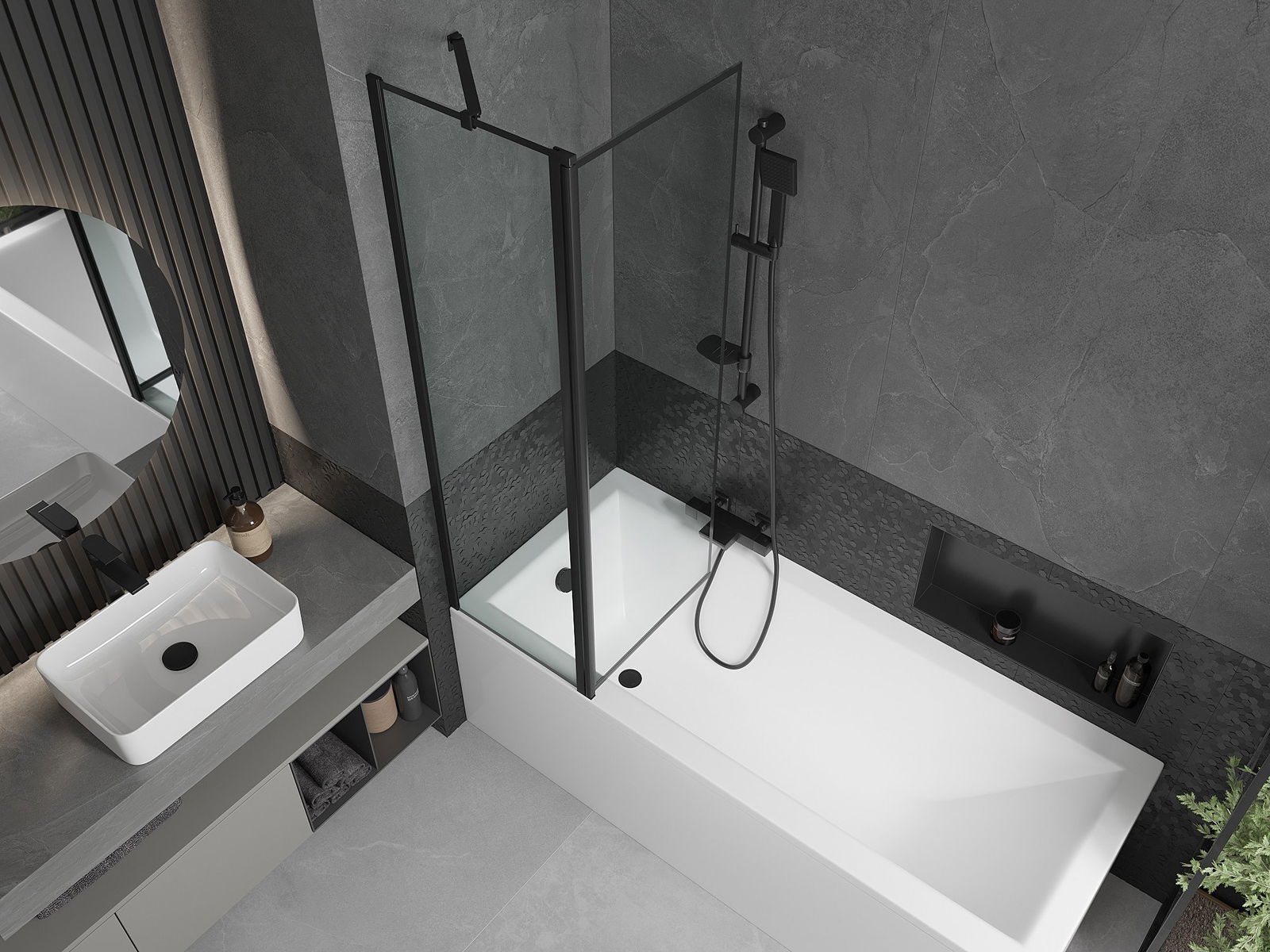 The screen has one moving wing with the possibility of folding. This solution saves more space in the bathroom and allows you to freely use the remaining space when we do not use the bathing area.