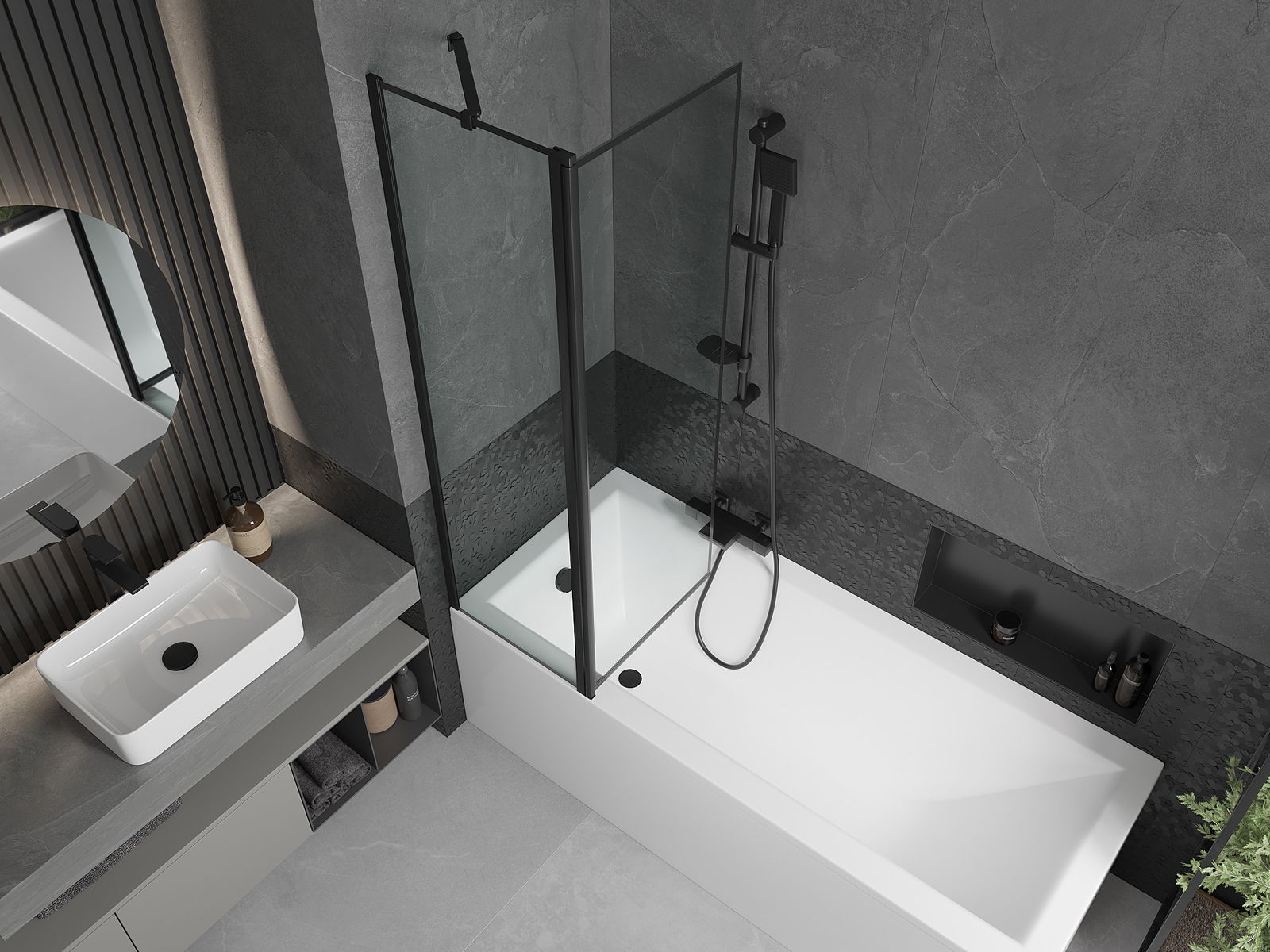 The screen has one movable wing that can be folded. This solution saves more space in the bathroom and allows free use of the remaining space when the bathing area is not in use.