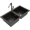 Mexen Mario 2-bowl granite sink with Flora kitchen tap, black - 6504-77-670401-57-B