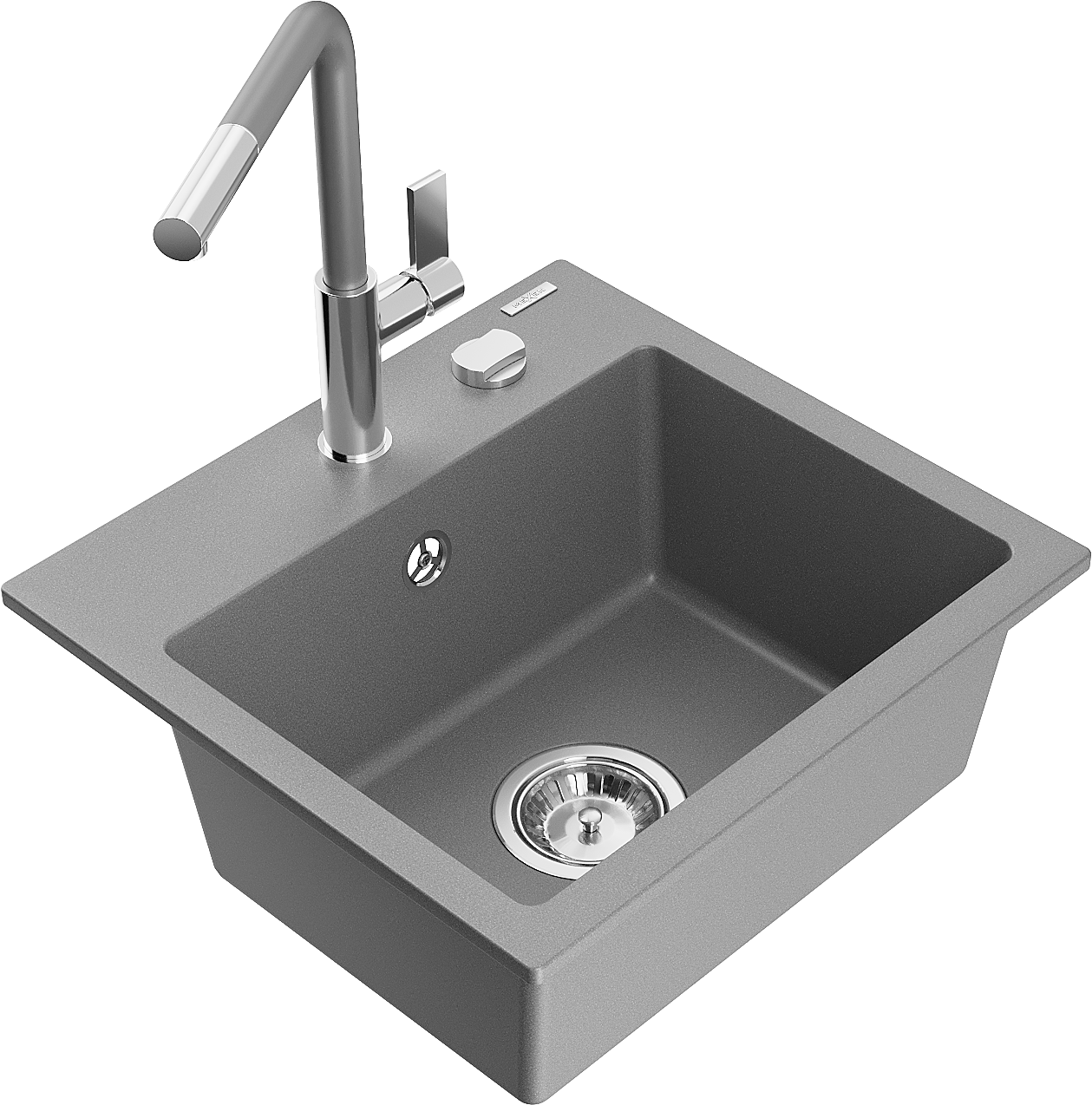 Mexen Milo 1-bowl Granite Sink with Flora Kitchen Tap, Grey - 6505-71-670401-06