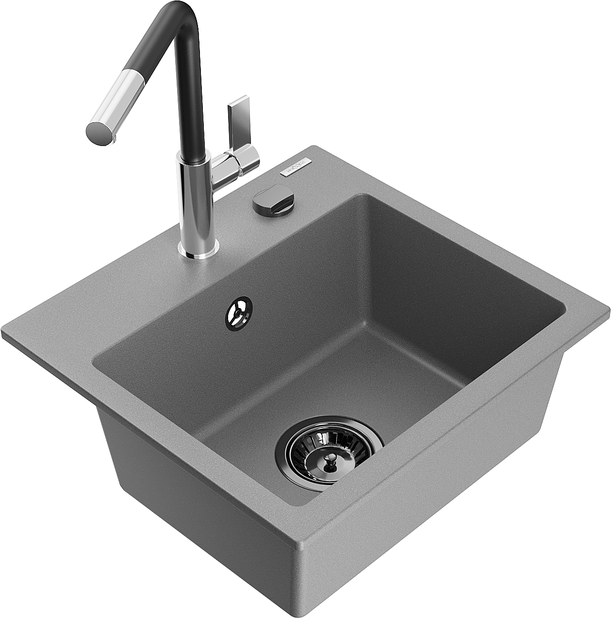 Mexen Milo 1-bowl granite kitchen sink with Flora kitchen tap, grey - 6505-71-670401-07-B