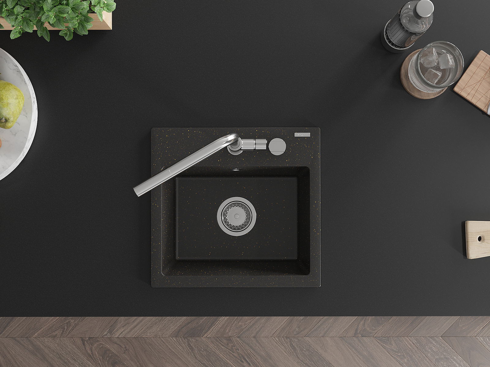 The sink is made of high quality granite. It is an elegant and, above all, practical complement to every kitchen, regardless of its style. High quality and granite durability ensure many years of use.