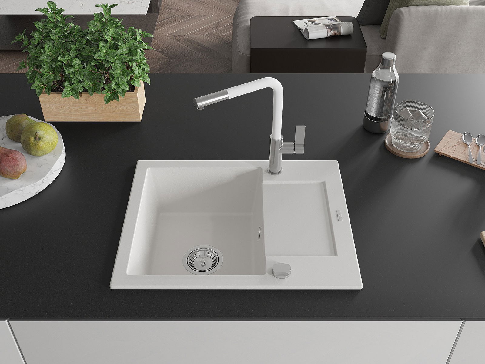 The sink is made of high quality granite. It is an elegant and, above all, practical complement to every kitchen, regardless of its style. High quality and granite durability ensure many years of use.