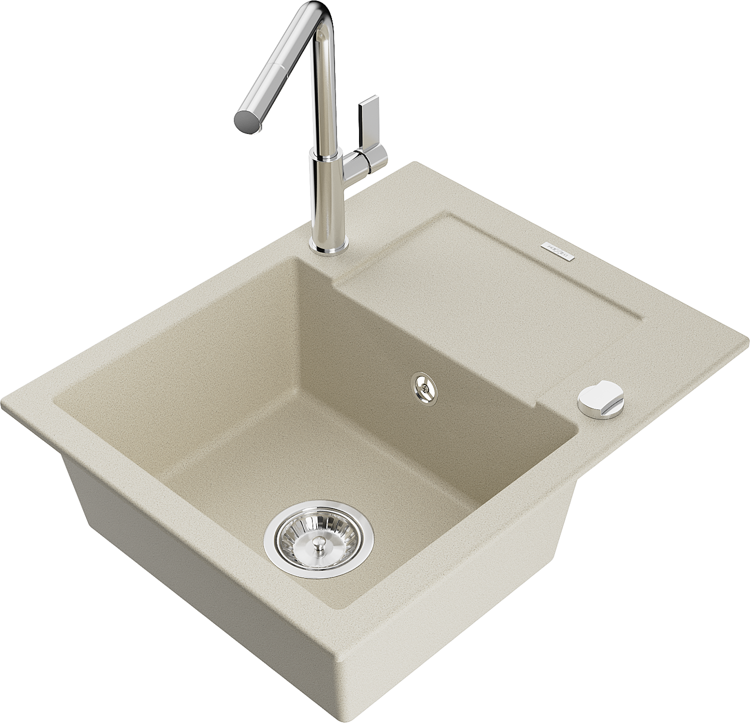 Mexen Enzo 1-bowl granite sink with drainer and Flora kitchen tap, beige - 6506-69-670401-00