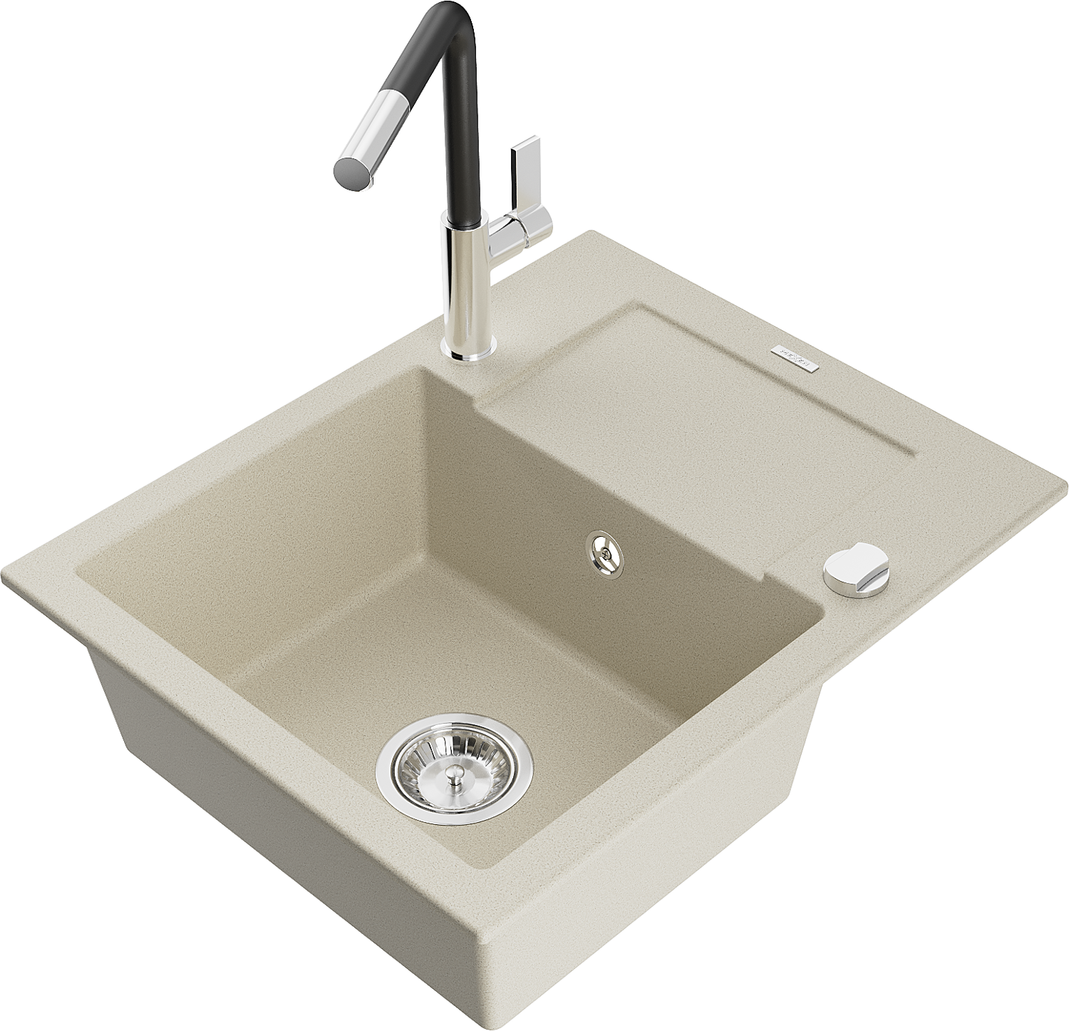 Mexen Enzo granite kitchen sink 1-bowl with drainer and Flora kitchen tap, beige - 6506-69-670401-07