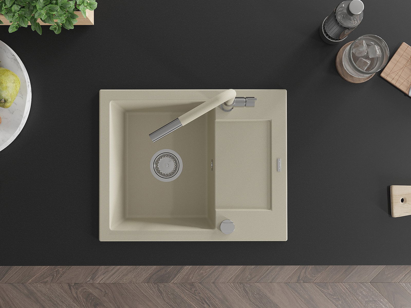 The sink is made of high quality granite. It is an elegant and, above all, practical complement to every kitchen, regardless of its style. High quality and granite durability ensure many years of use.